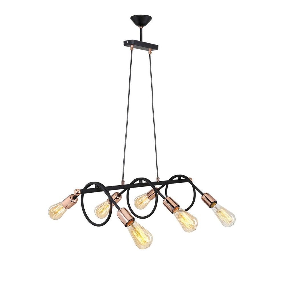 Lampada da soffitto Derbent MDL3938 in metallo nero con sei porta lampadeDisponibilità: 2 disponibili