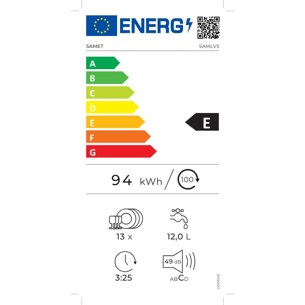 Lavastoviglie 13 coperti incasso classe E SAMET SAMLVS