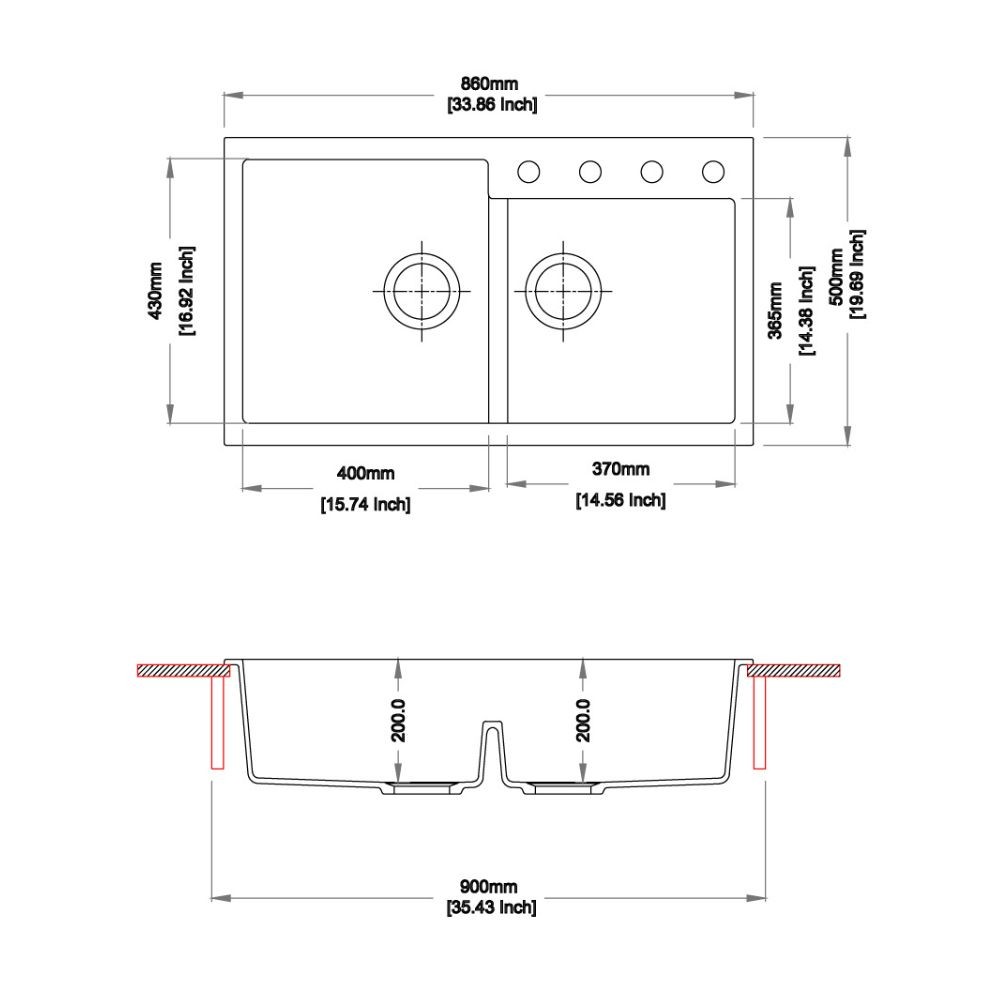 Dimensione vasca 365×370 mm.