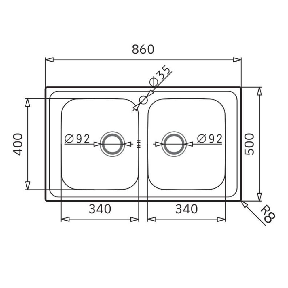 Lavello da incasso Tirreno862 2 vasche 86×50 inox