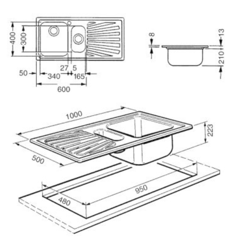 Dimensioni vasca dx, L x P x A (mm): 340 x 400 x 210 mm