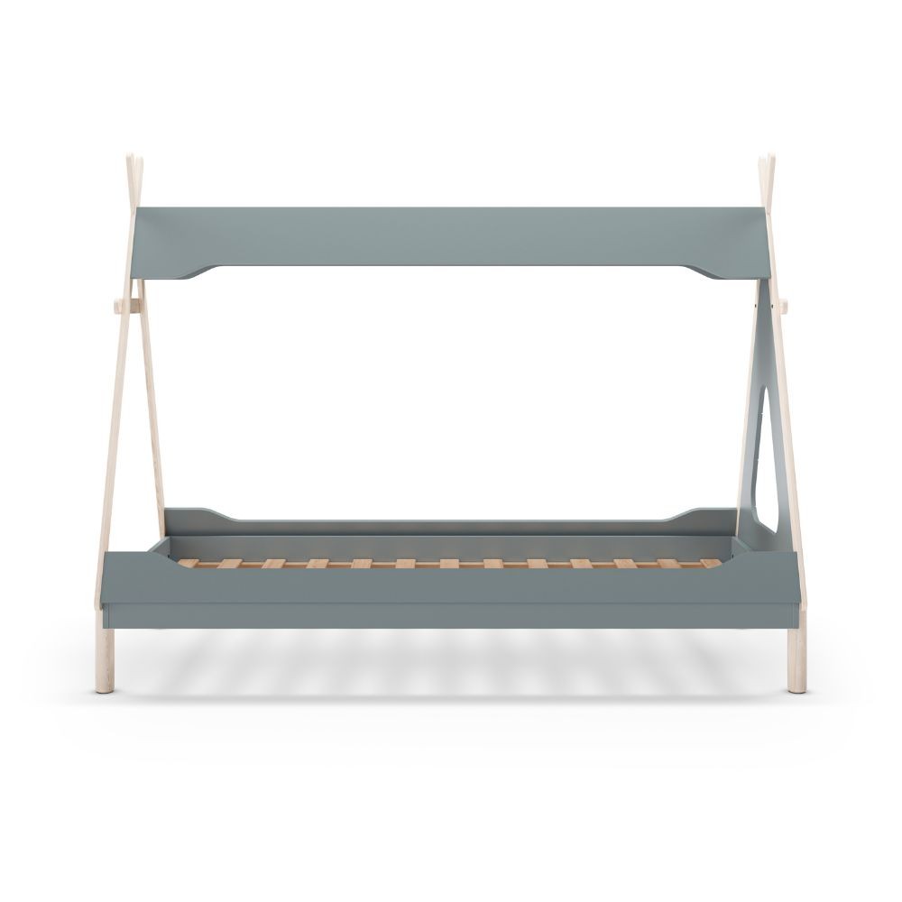 Letto a capanna Nora in legno massiccio colore verde petrolio e bianco