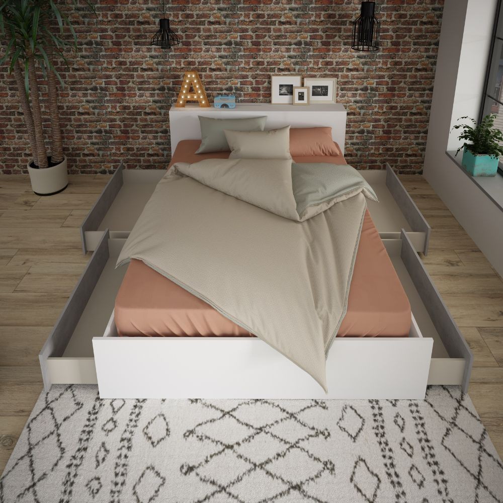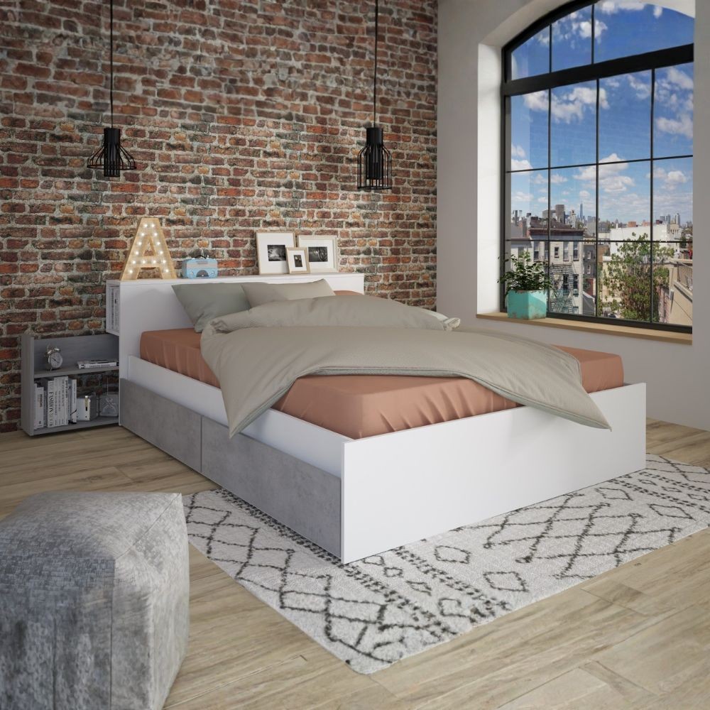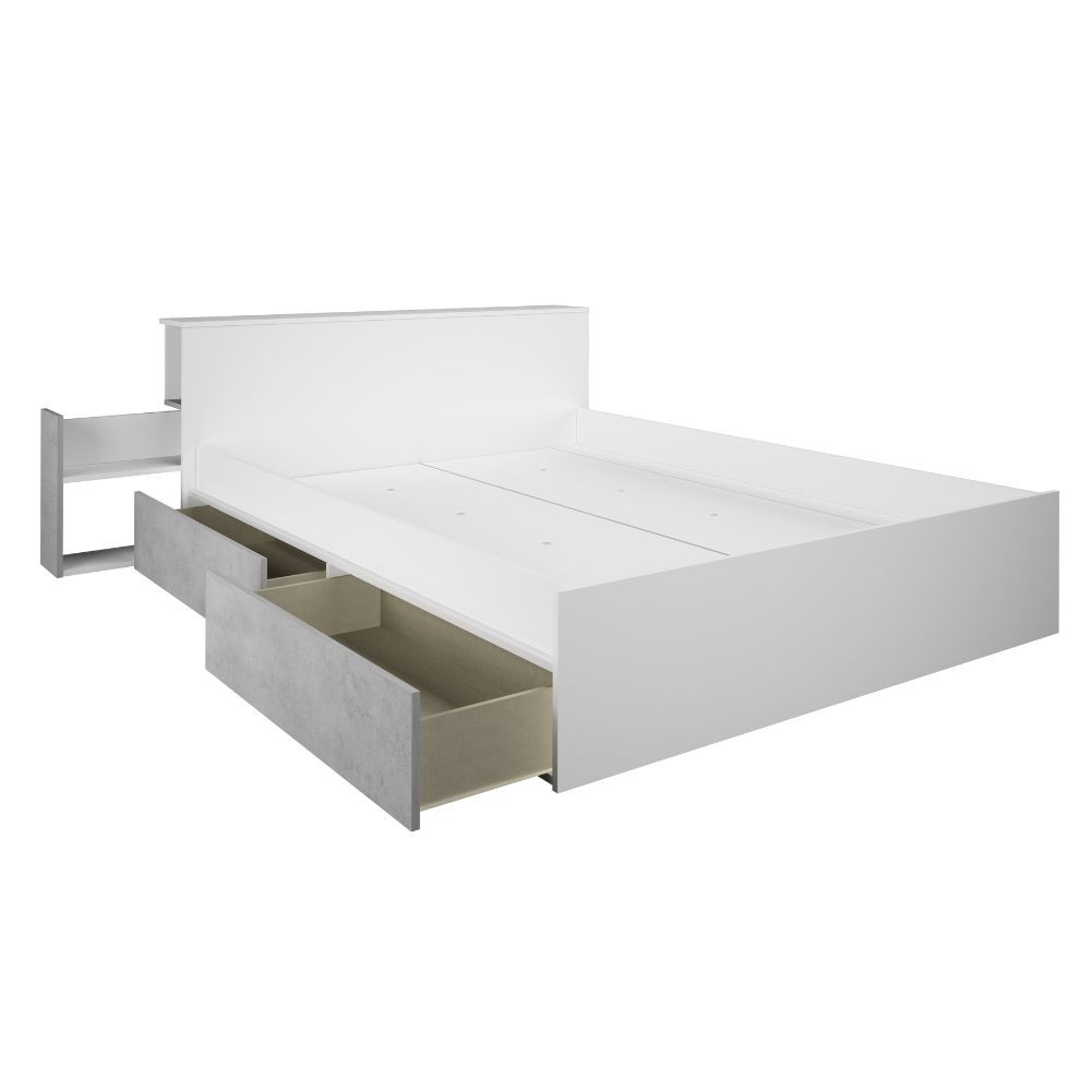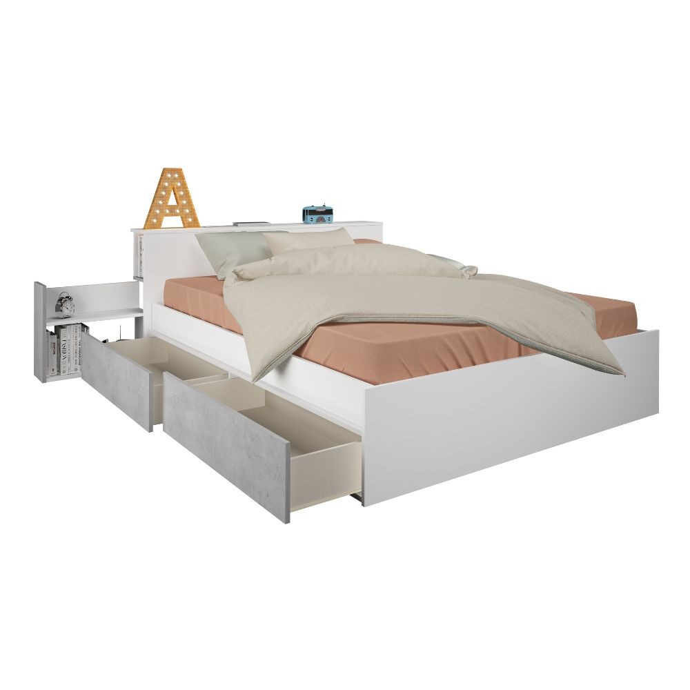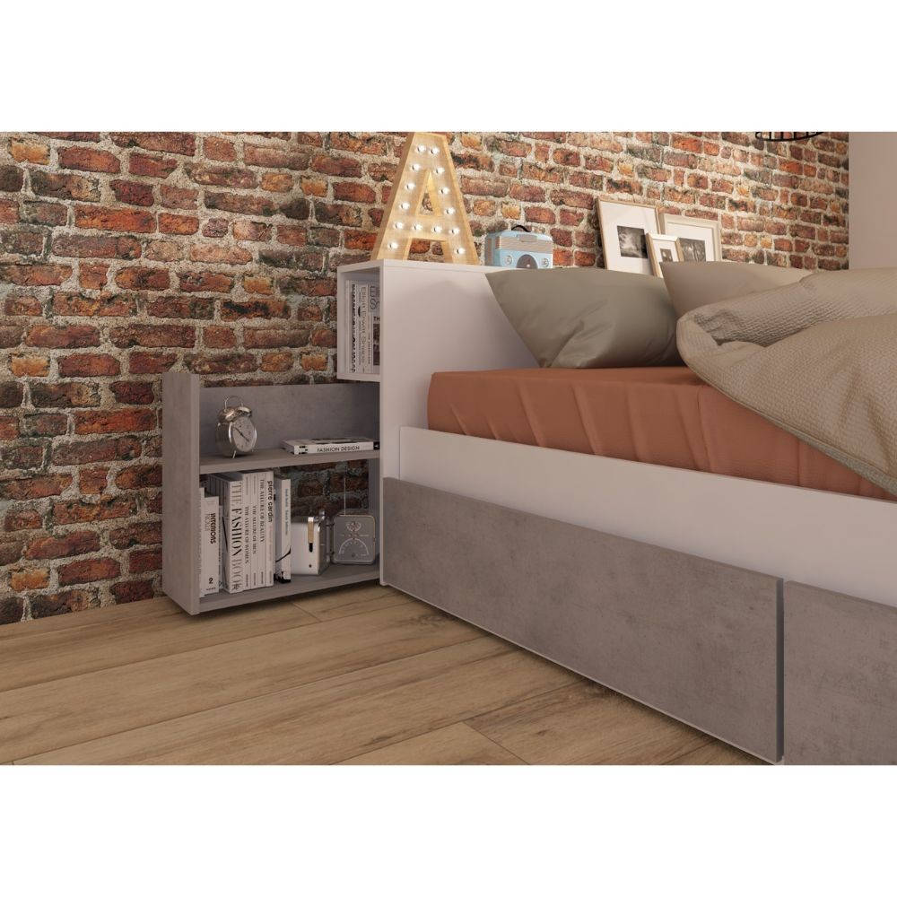 Letto contenitore 1566 alla francese con 4 cassettoni e comodini estraibili colore bianco e cemento