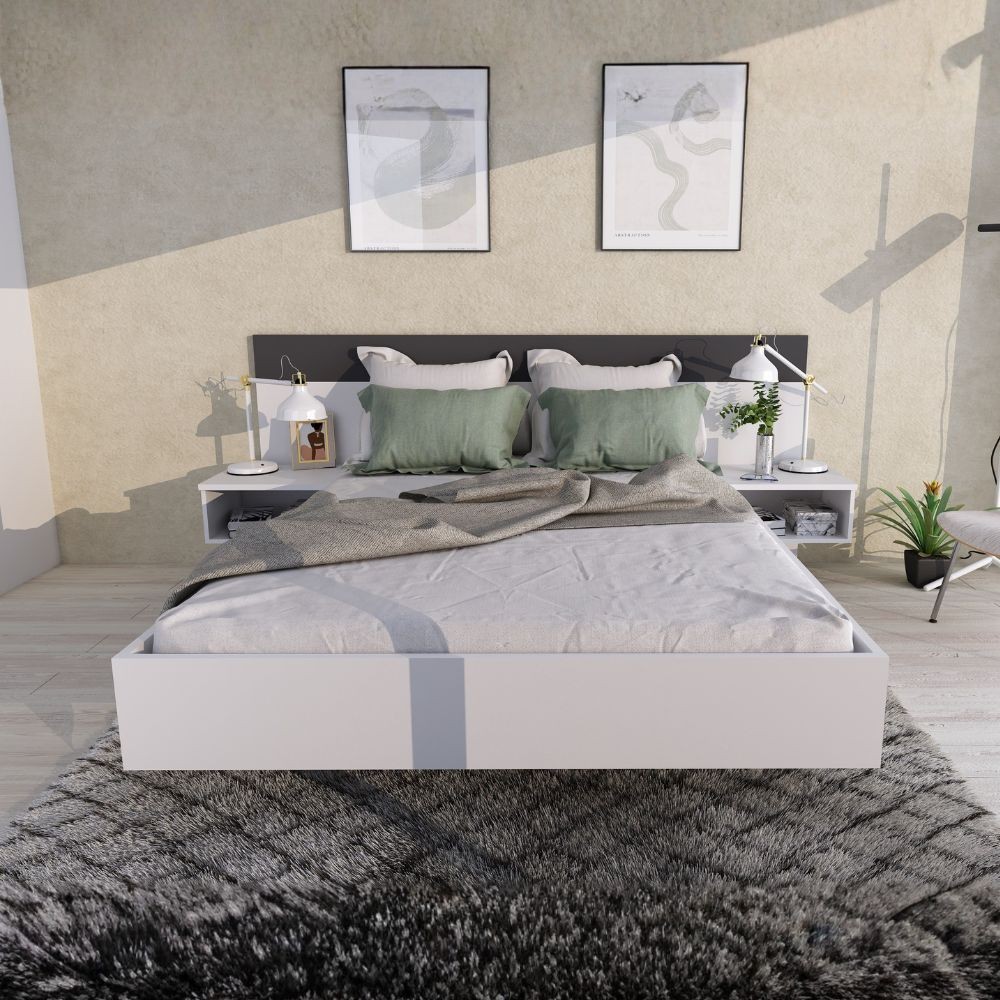 Struttura letto alla francese 1514 con comodini integrati colore bianco e antracite