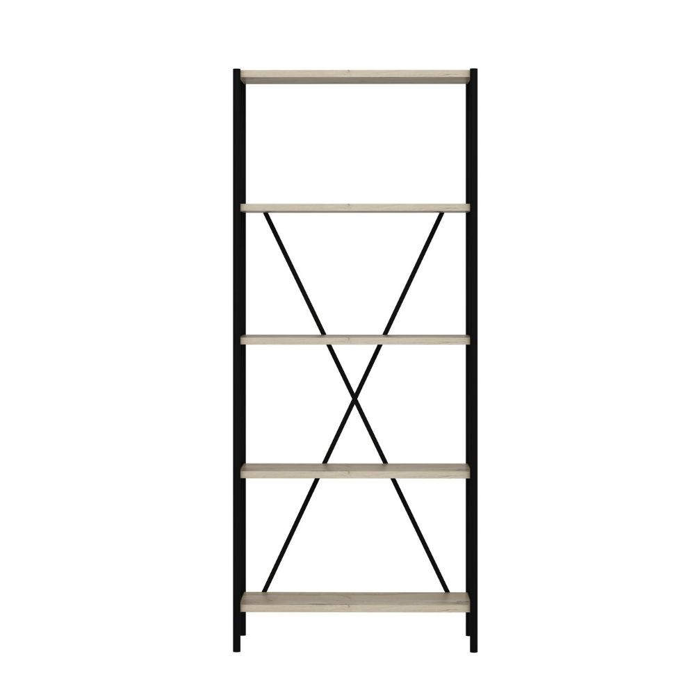 Libreria Axel con struttura in metallo nero e 5 mensole in rovere sonoma
