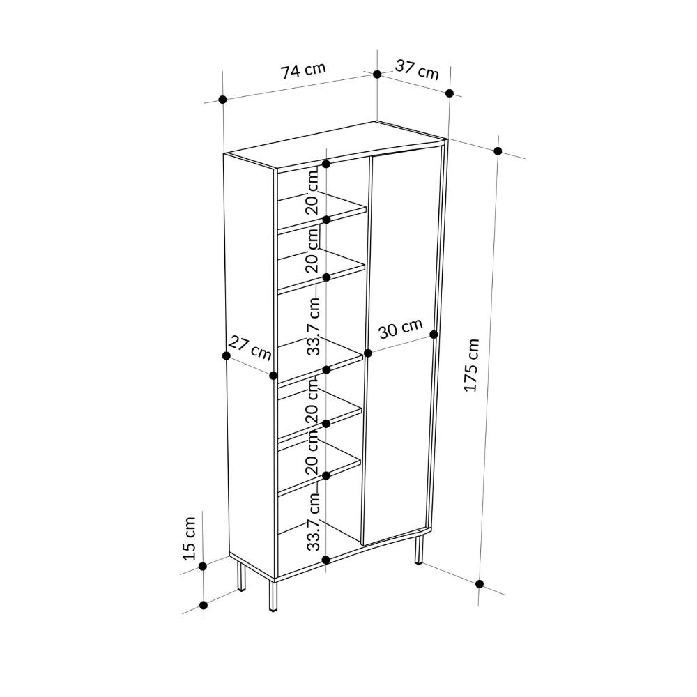 Dimensioni: L 74 x P 37 x H 175 cm.