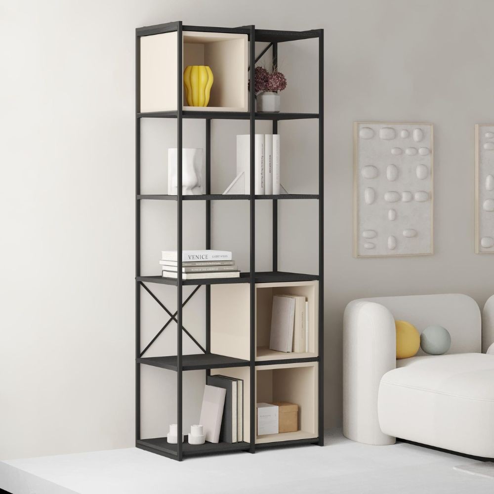 Libreria Vale midi con struttura in metallo nero e cubotti cashmere