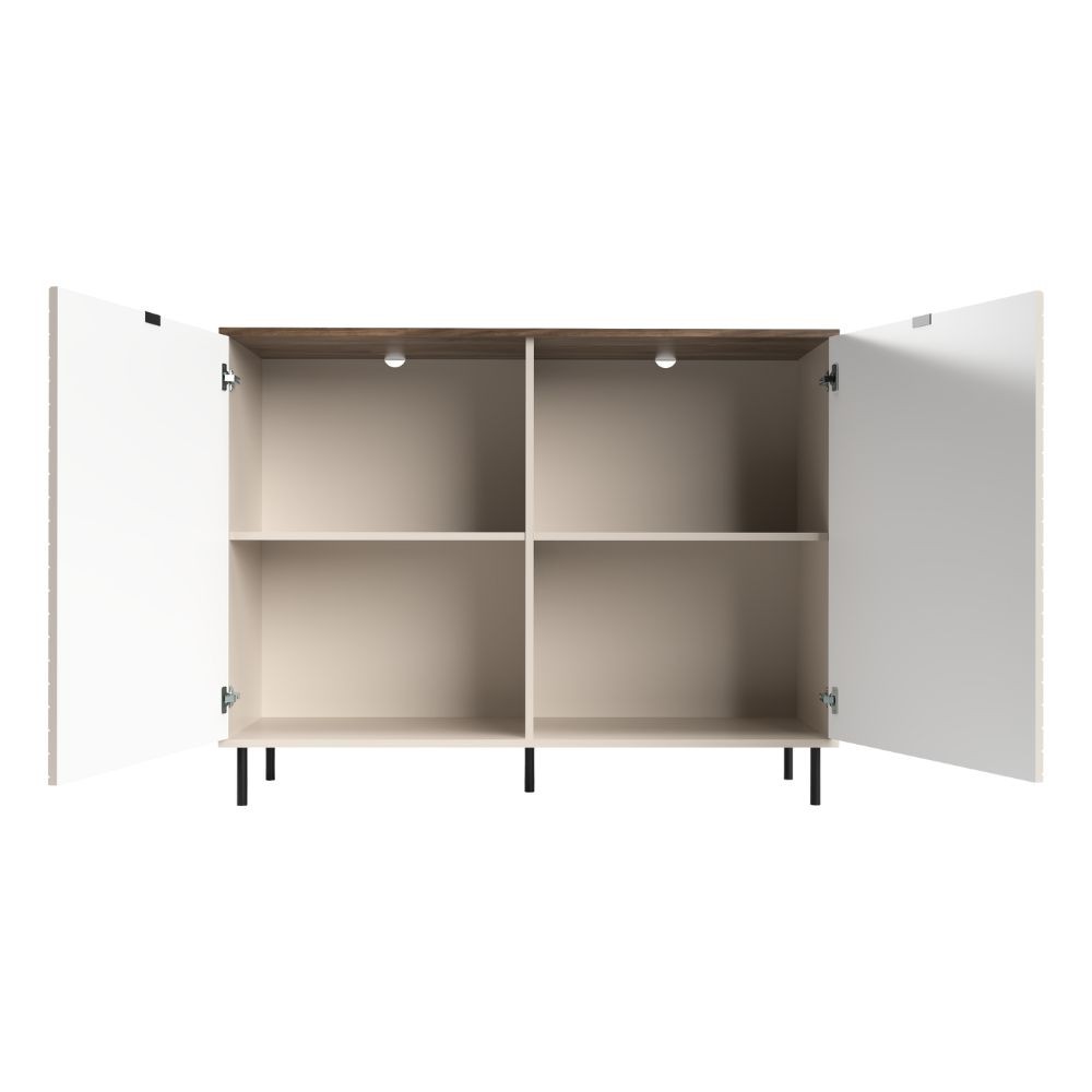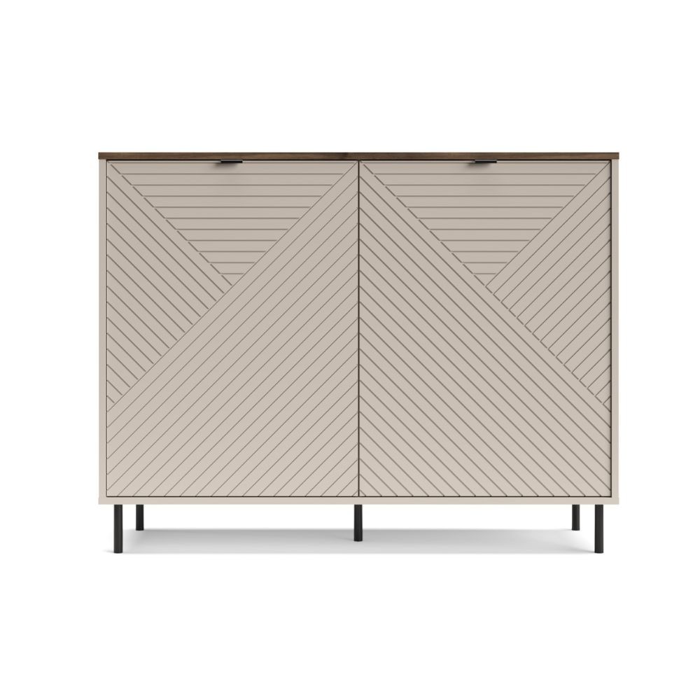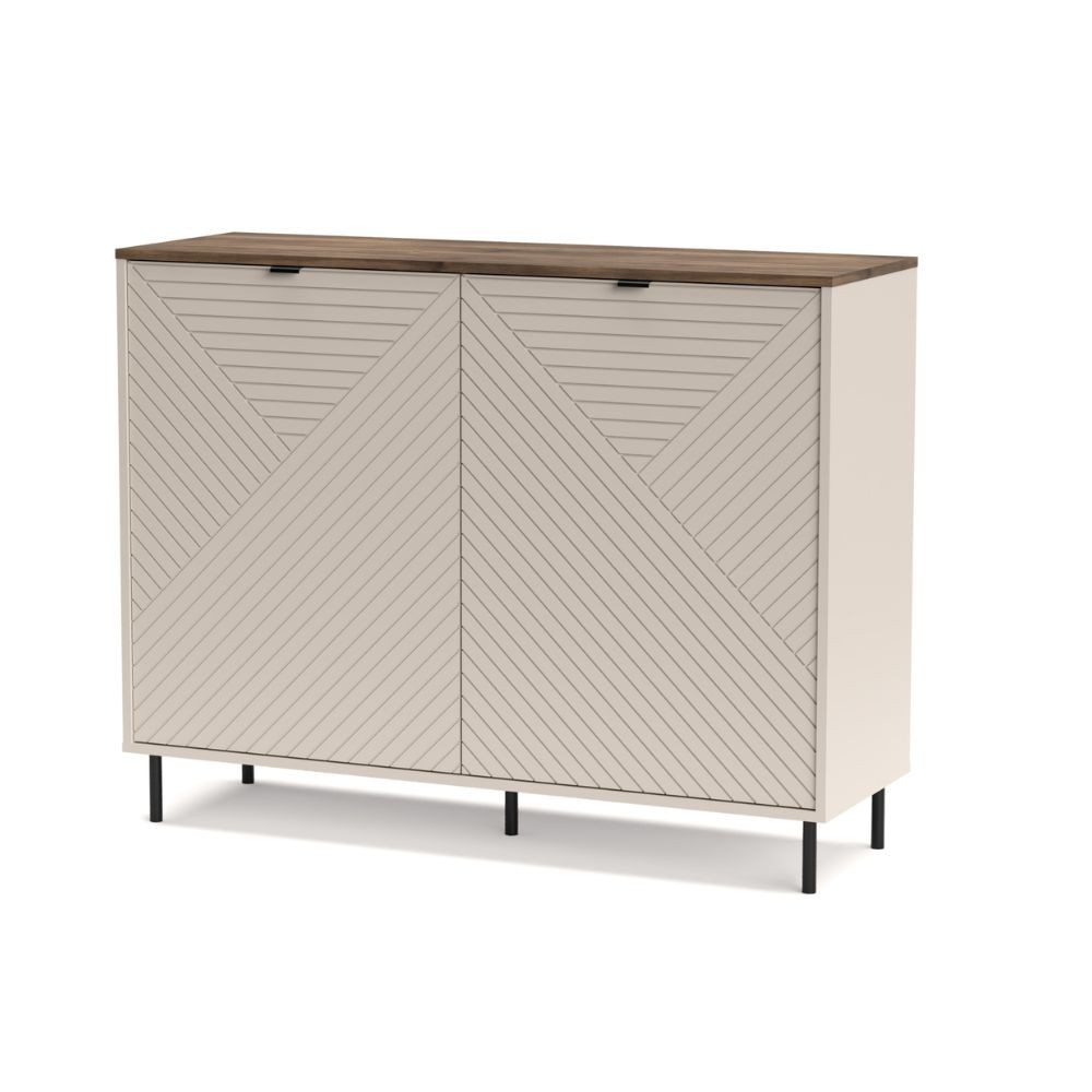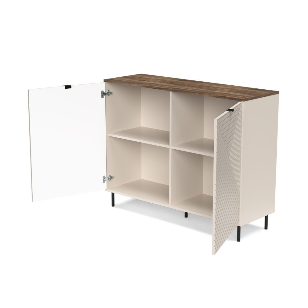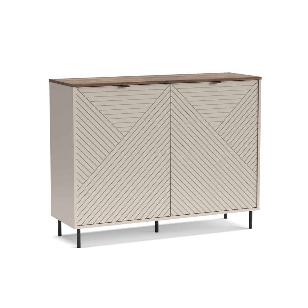 Credenza Mirage01 con 2 ante cashmere con motivo geometrico e top rovere