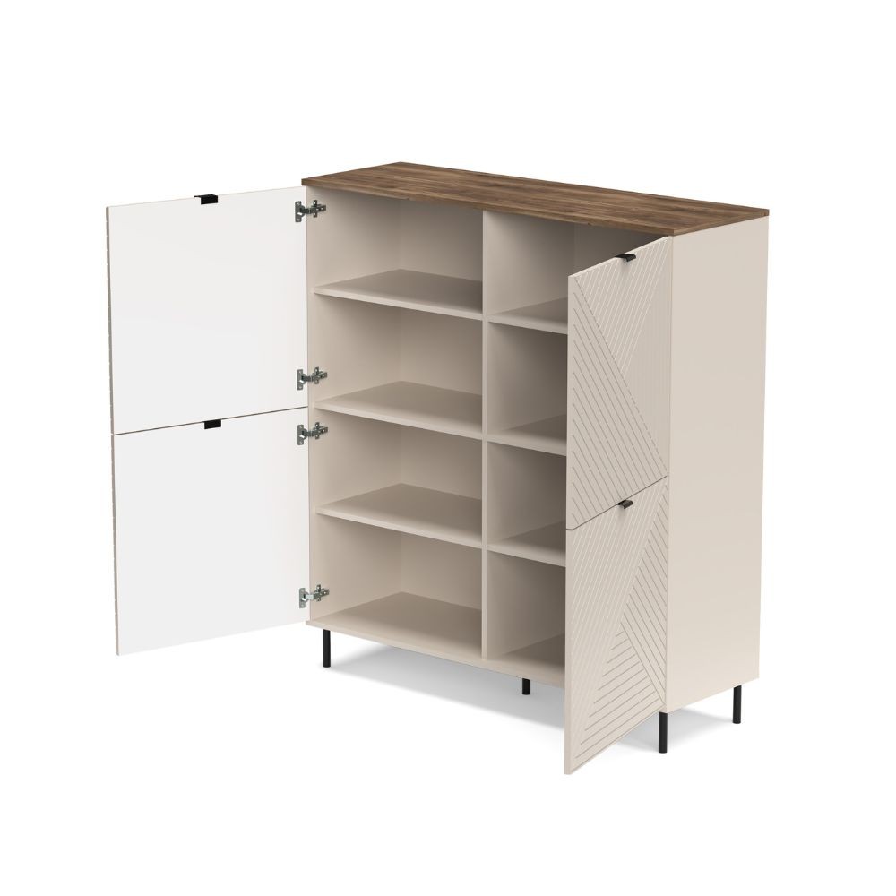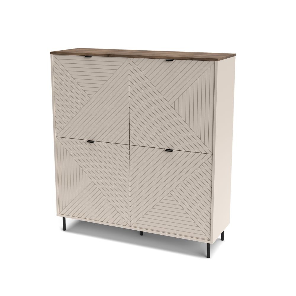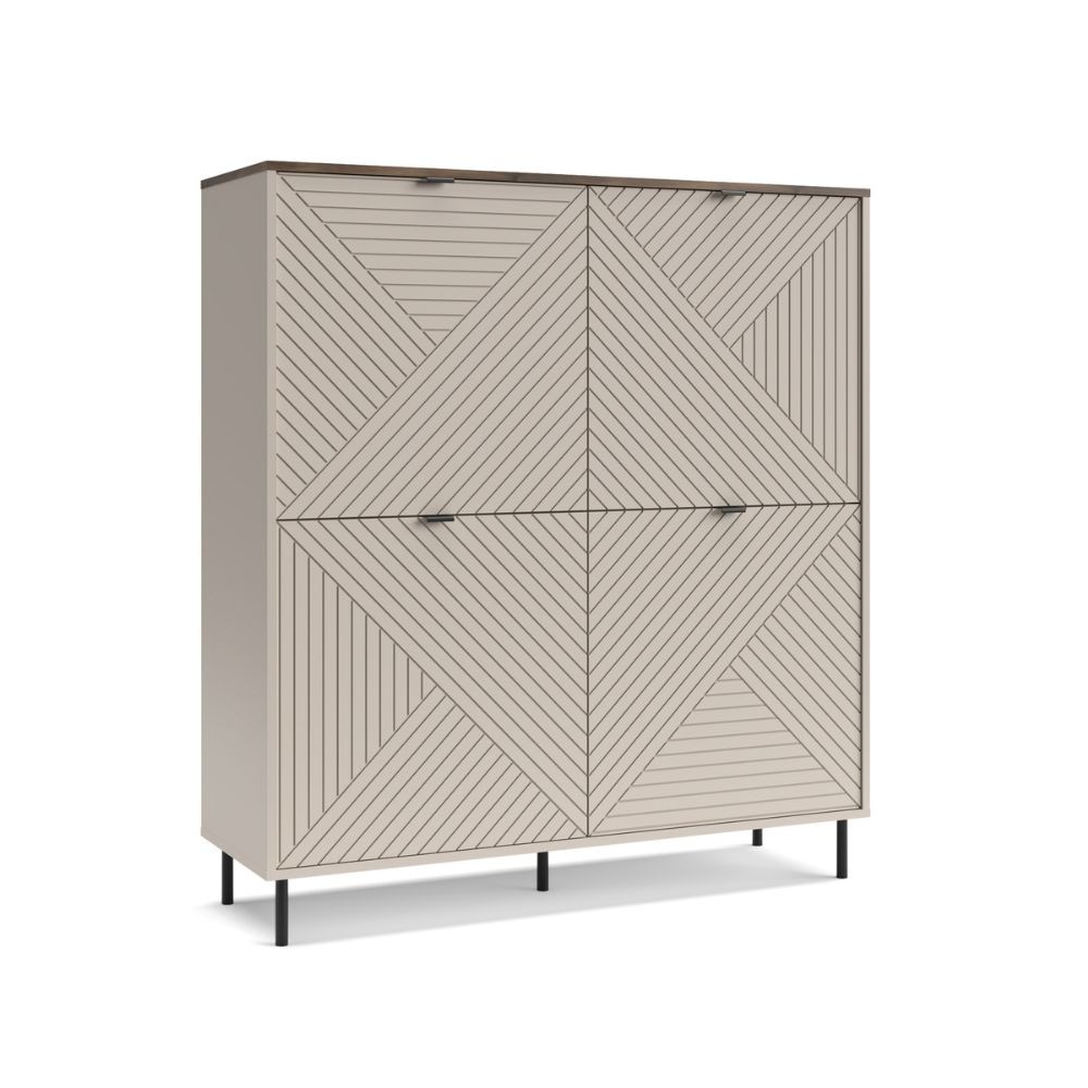 Credenza Mirage02 con 4 ante con motivo geometrico cashmere e top rovere