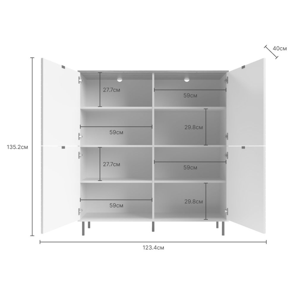 Dimensioni: L 123.40 x P 40 x H 135.20 cm.