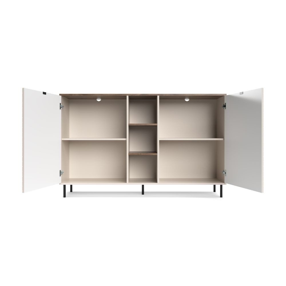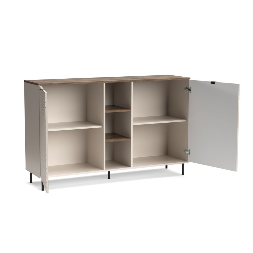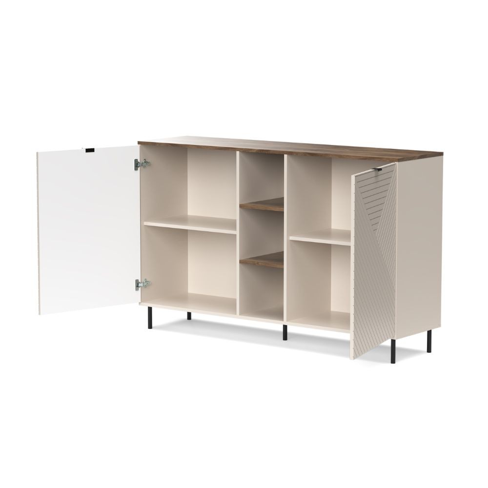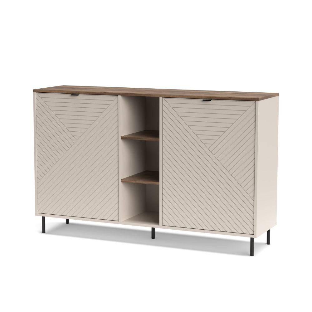 Credenza Mirage08 con 2 ante con motivo geometrico e ripiani a giorno colore cashmere e rovere