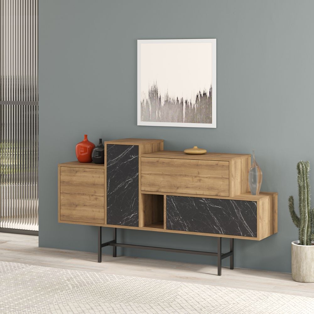 Madia Hermes colore hitit noce con ante e cassetti effetto marmo nero 160 cm