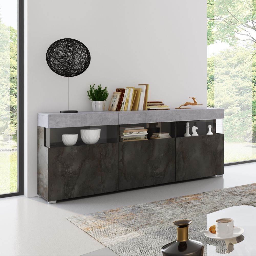 Madia Itaca con 3 ante e 3 vani a giorno con inserti in vetro colore ossido e cemento