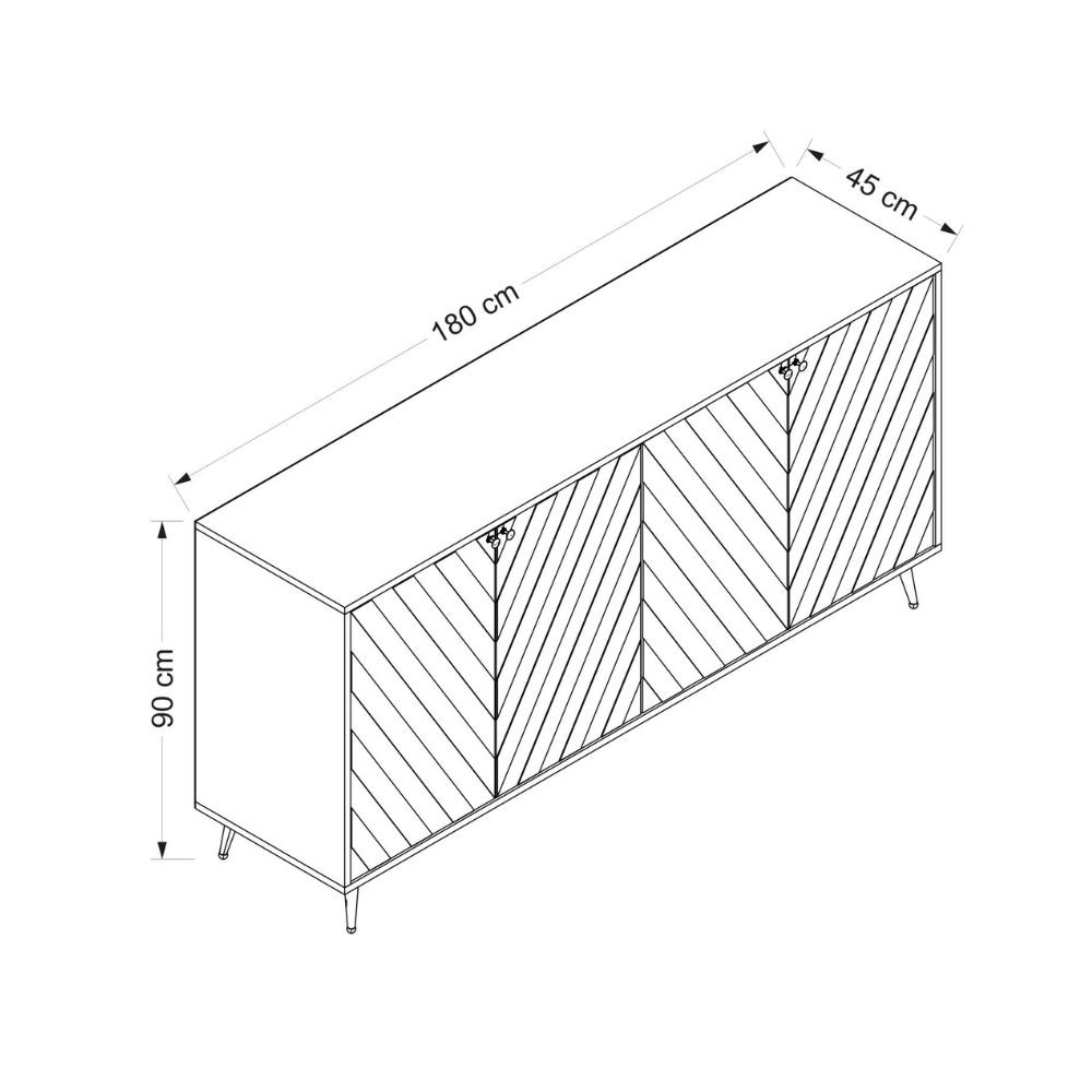 Dimensioni: L 180 x P 45 x H 90 cm.
