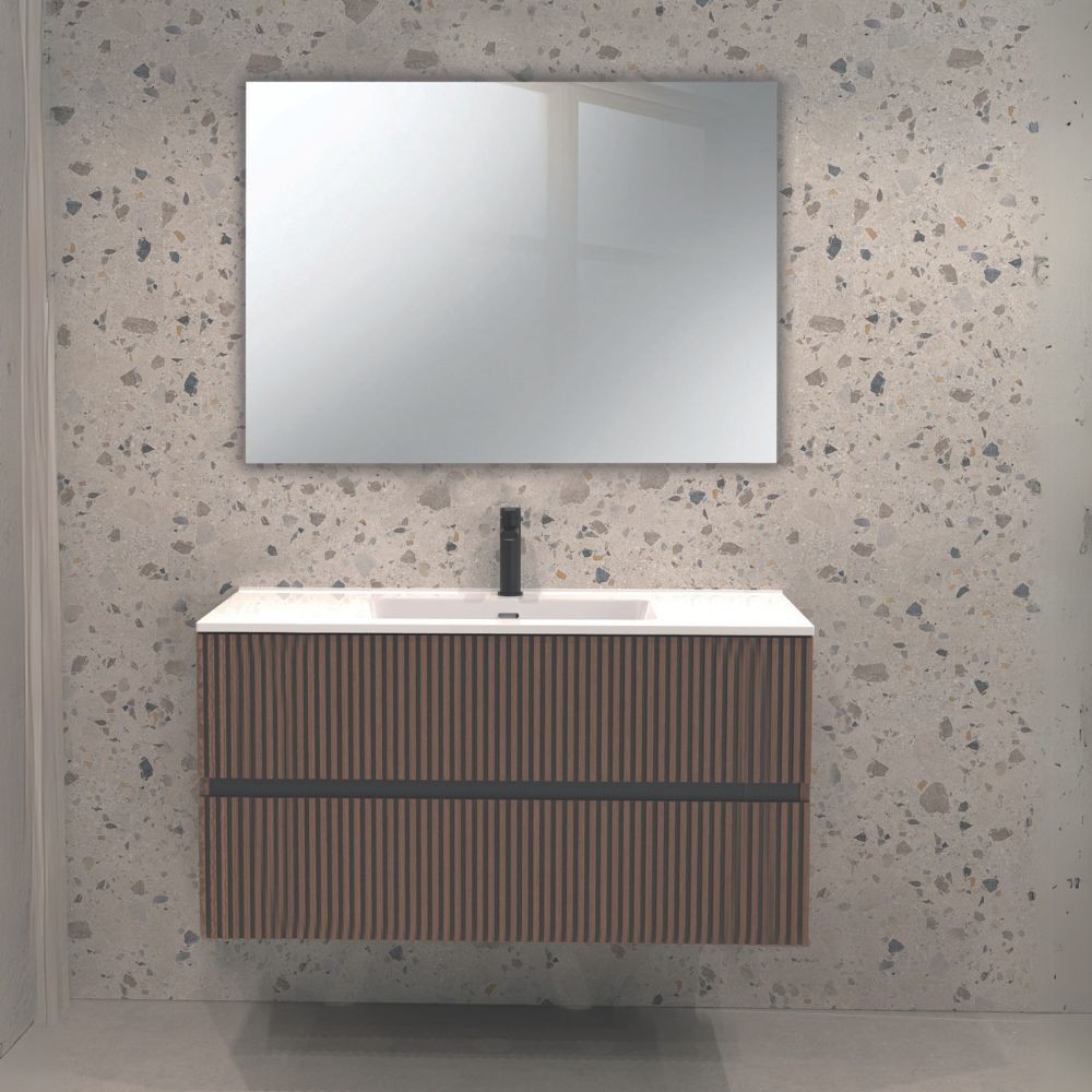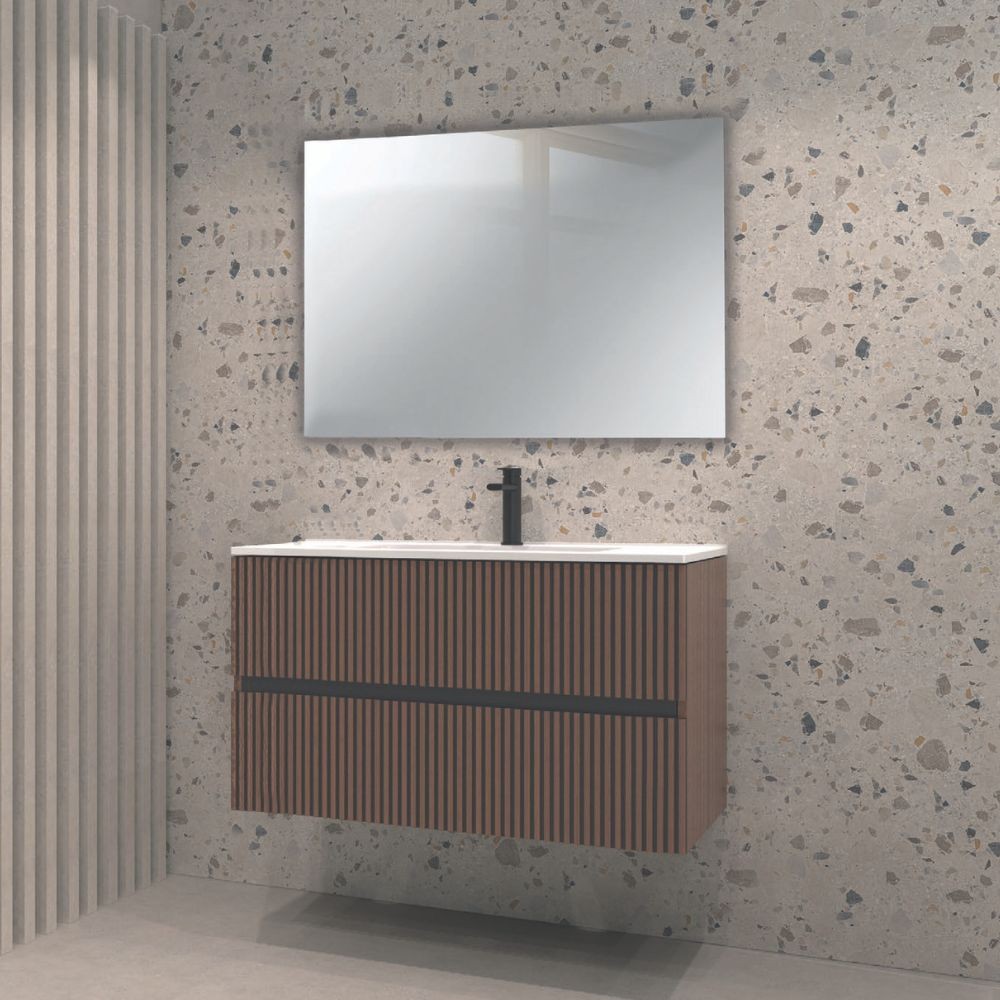 Mobile da bagno sospeso Belfast con due cassetti colore noce effetto cannettato