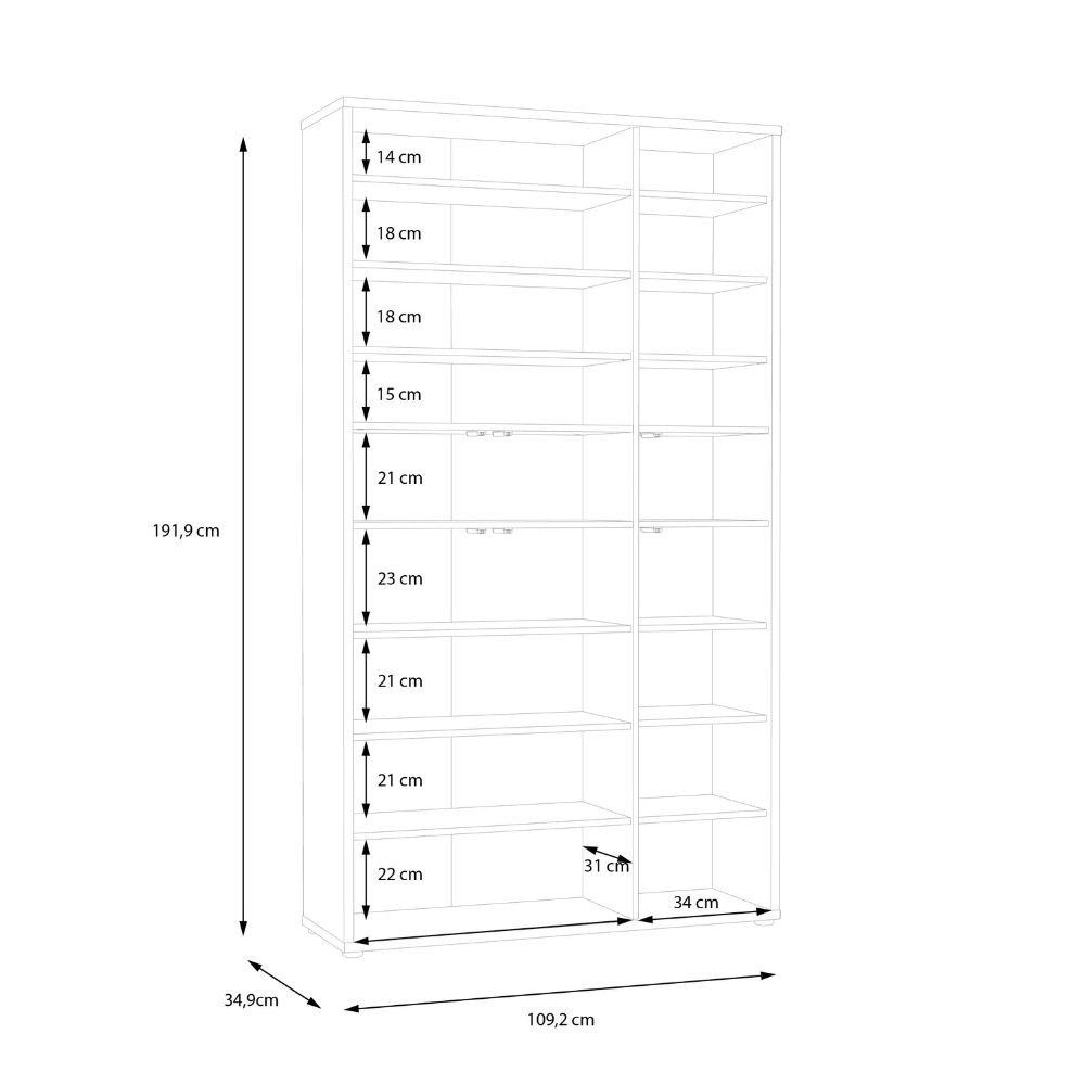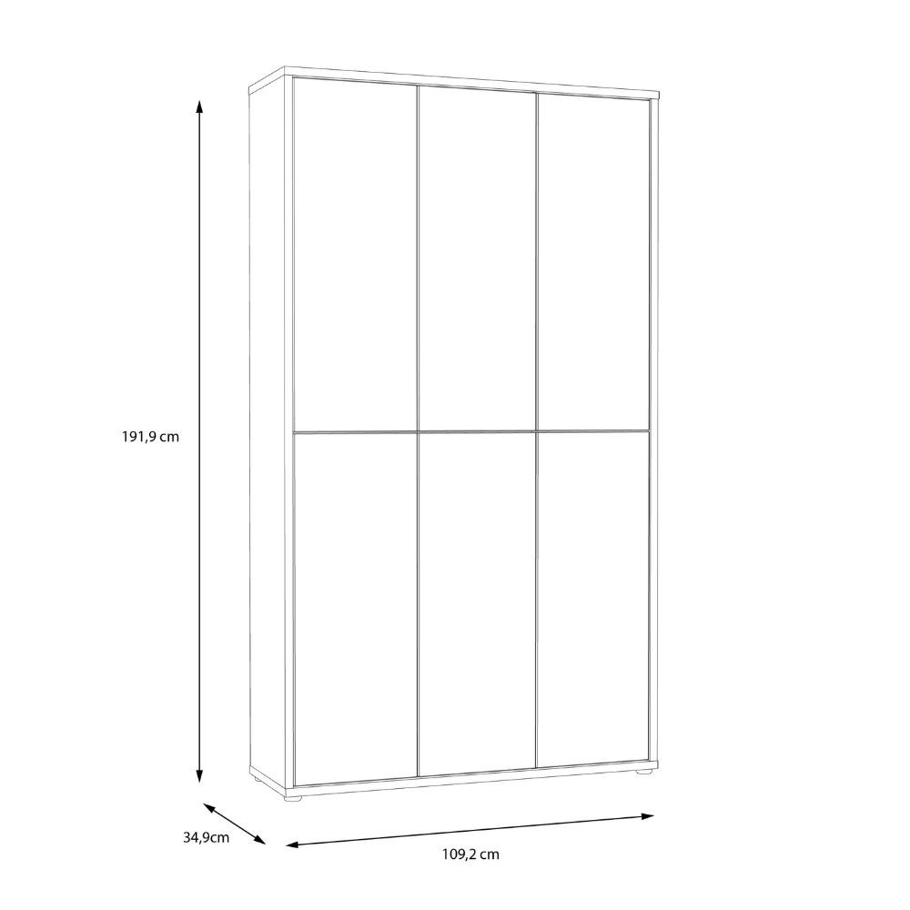 Dimensioni: L 109.2 x P 34.9 x H 191.9 cm.