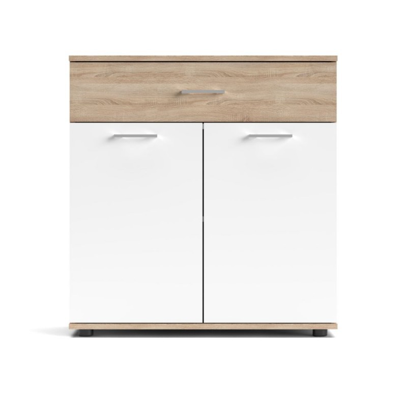 Mobile multiuso Irys con 2 ante e un cassetto colore bianco e rovere sonomaMobile multiuso Irys con 2 ante e un cassetto colore bianco e rovere sonoma