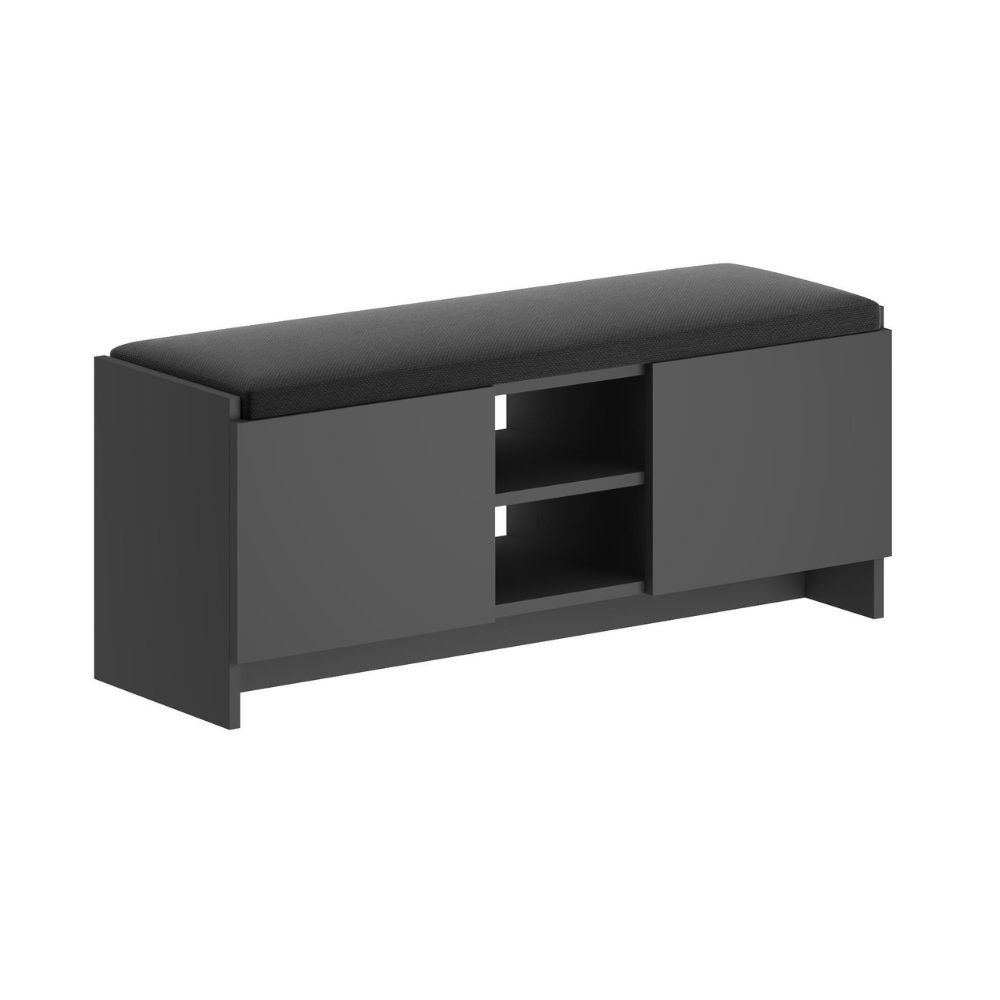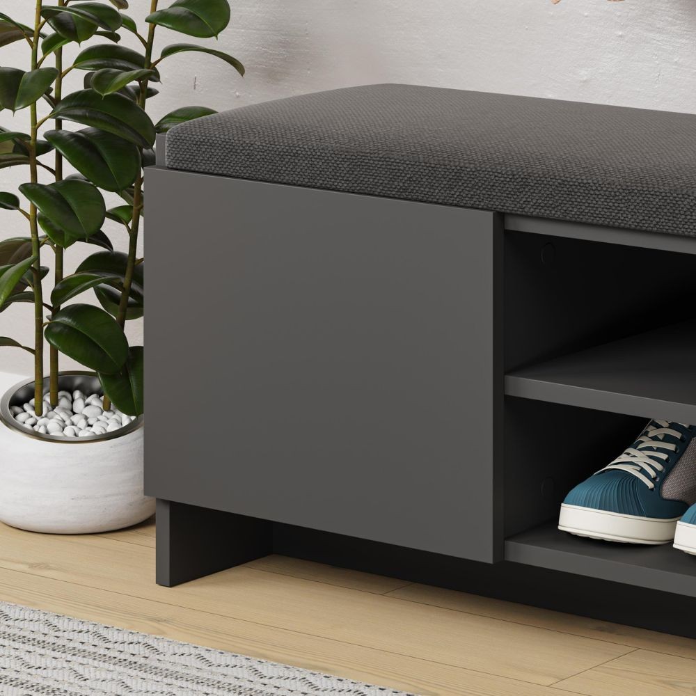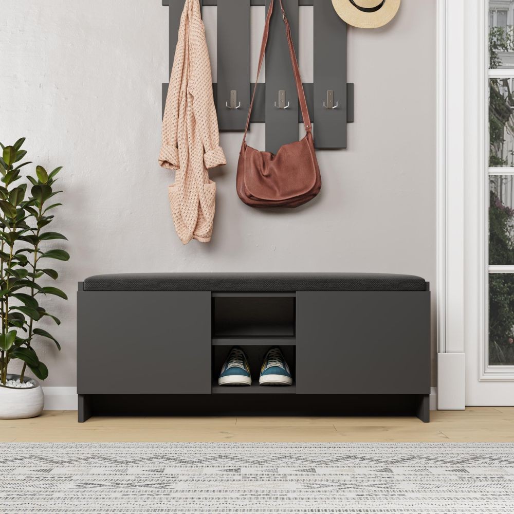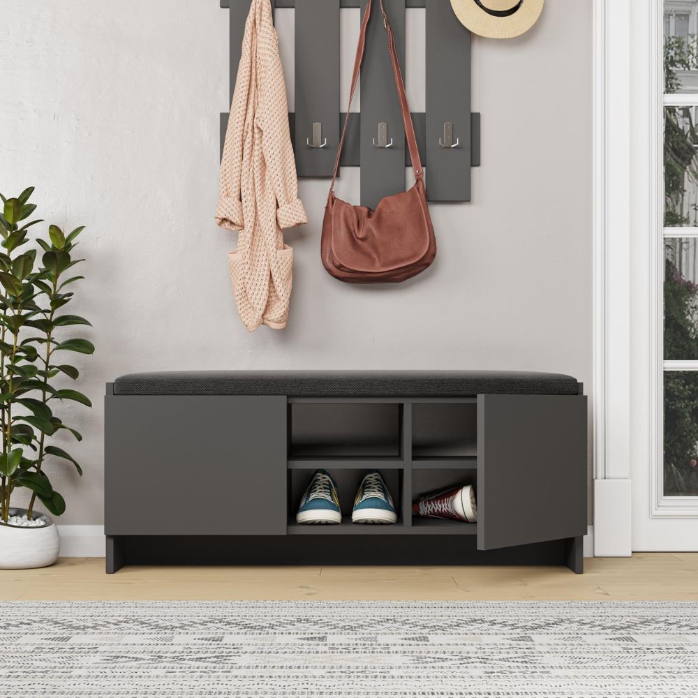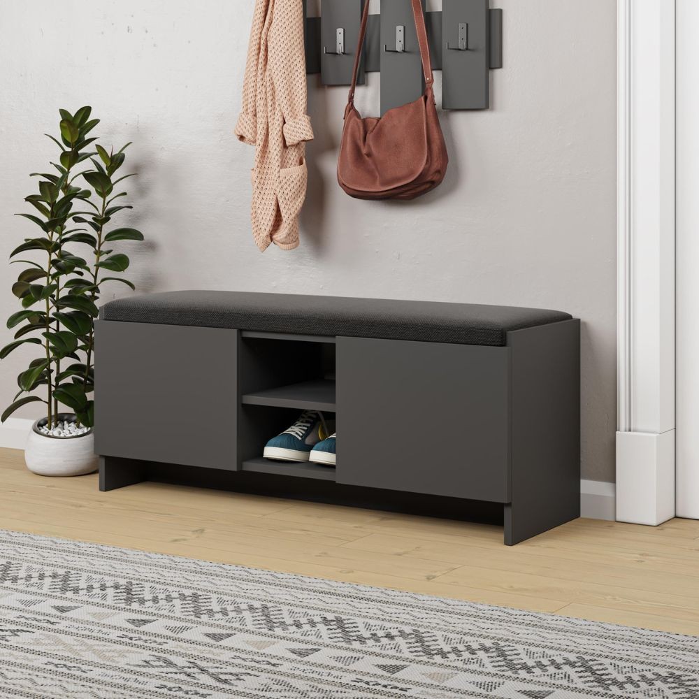 Panca scarpiera con cuscino Zulla antracite con 2 ante e nicchia a giorno