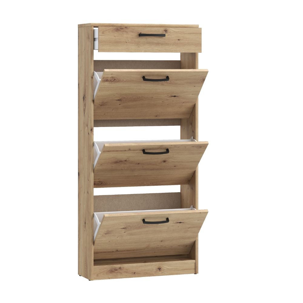 Scarpiera Cecilia con 3 scomparti ed un cassetto colore rovere 58.2×20.4×127.7 H cm.