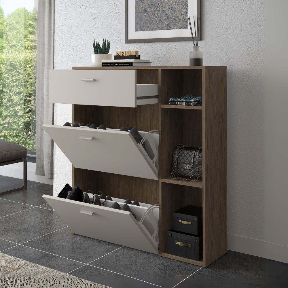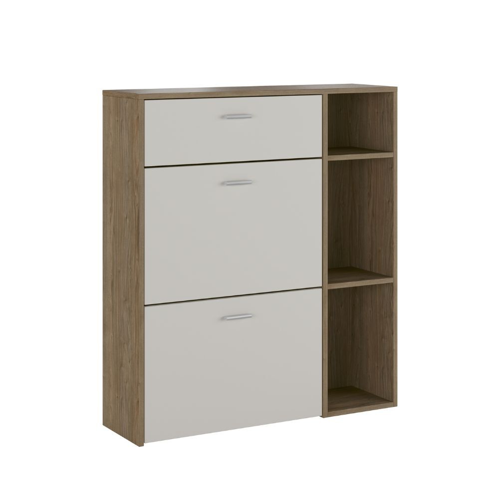 Scarpiera Takimi con 2 ante a ribalta 1 cassetto colore columella e cashmere