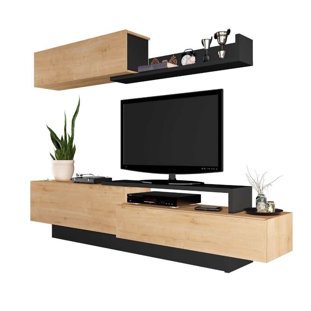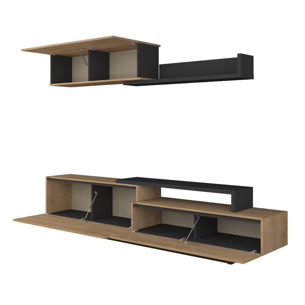 Parete attrezzata 8068 con 3 ante a ribalta e ripiano colore antracite e rovere