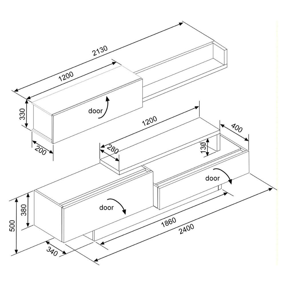 Reversibile: base TV e modulo superiore possono essere installati a desta o a sinistra