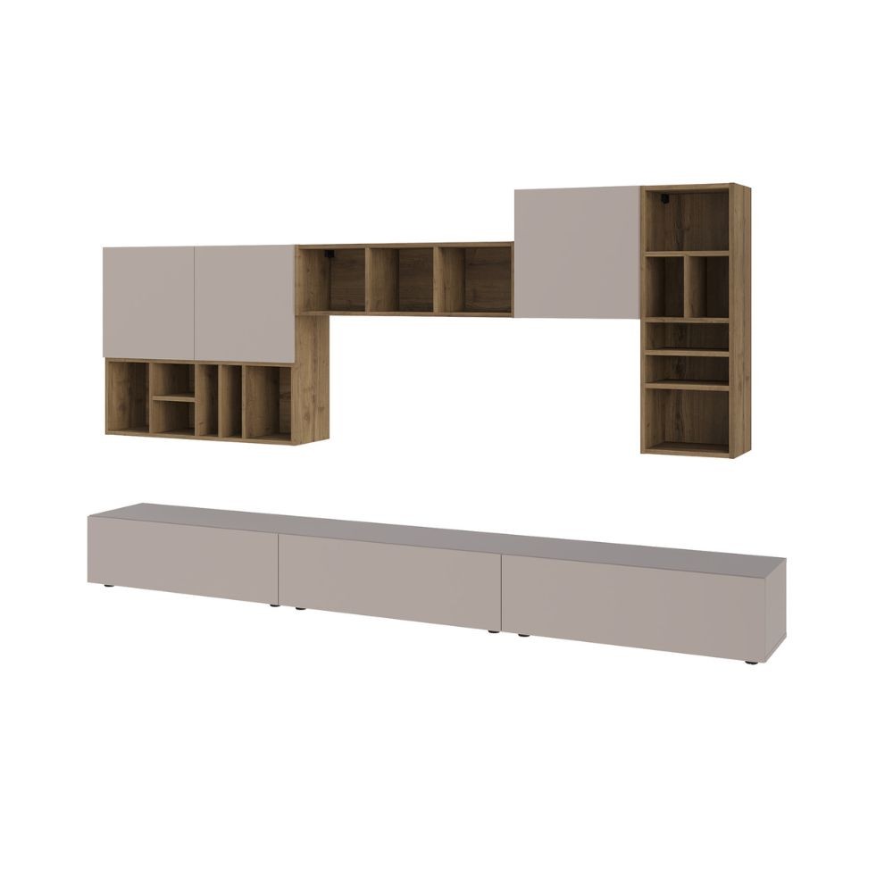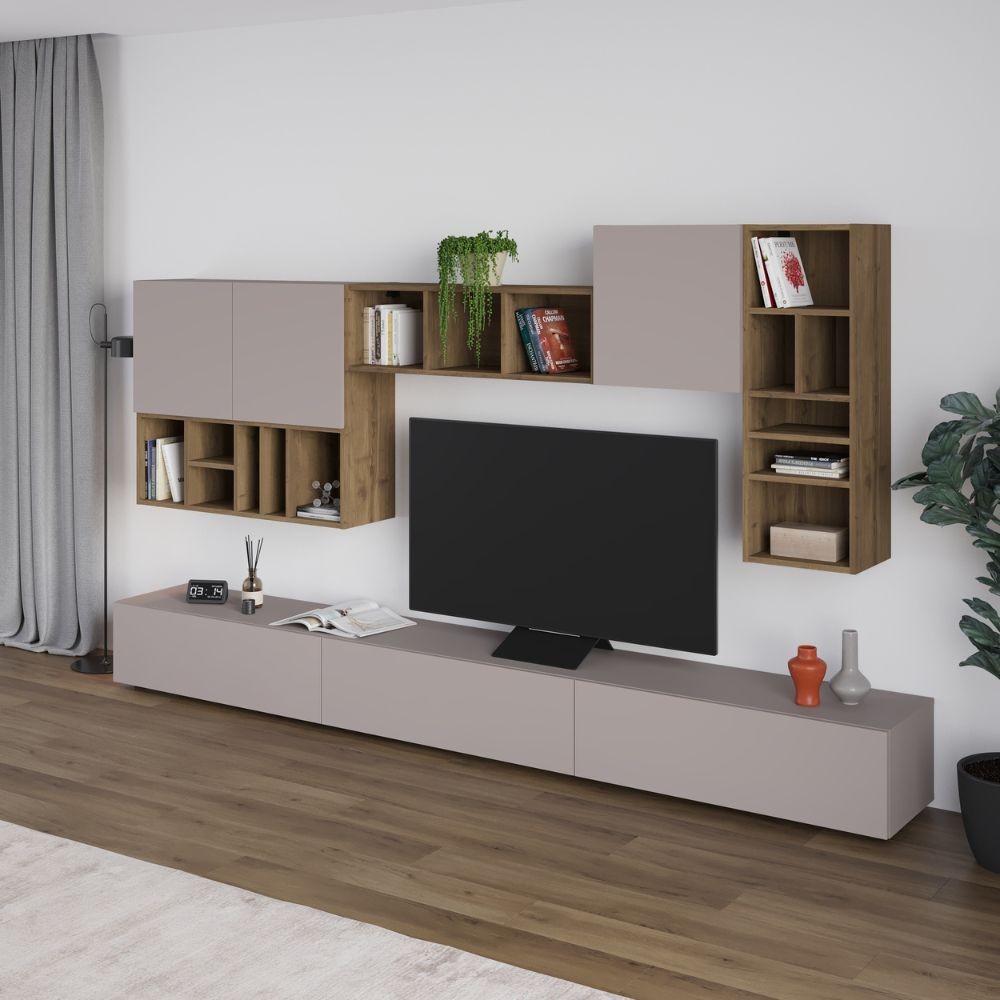Parete attrezzata Big colore tortora e hitit noce H 192×32.50×300 cm