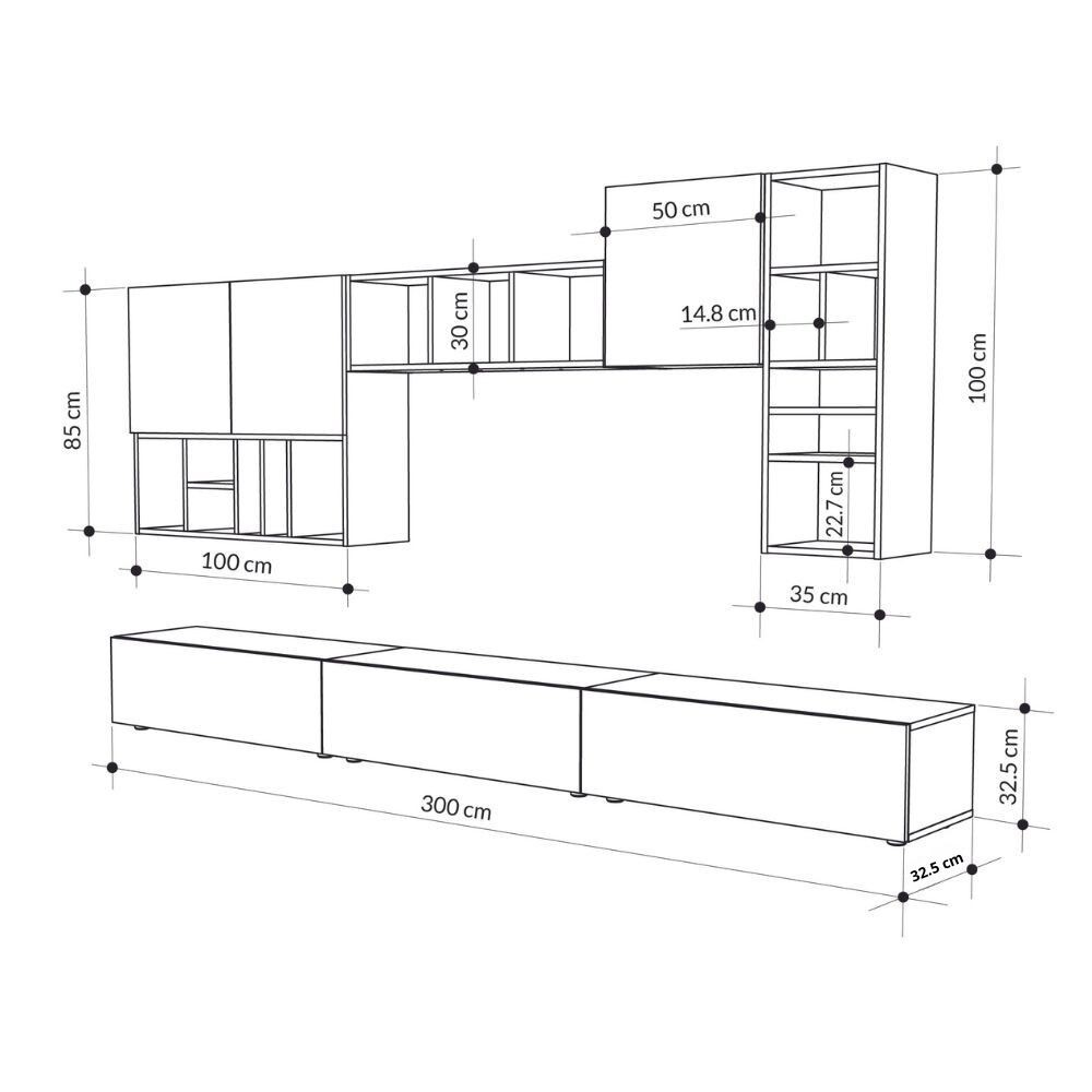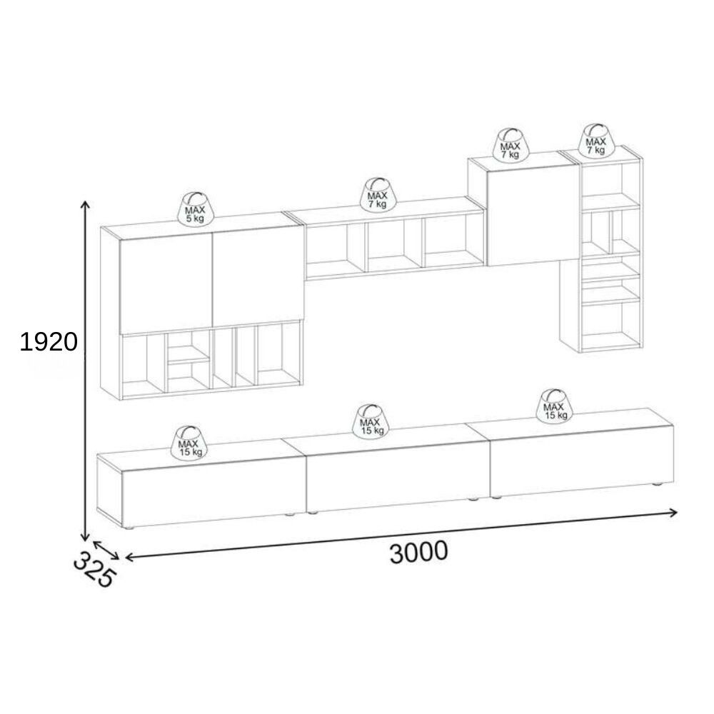 3 pensili libreria con 15 nicchie a giorno