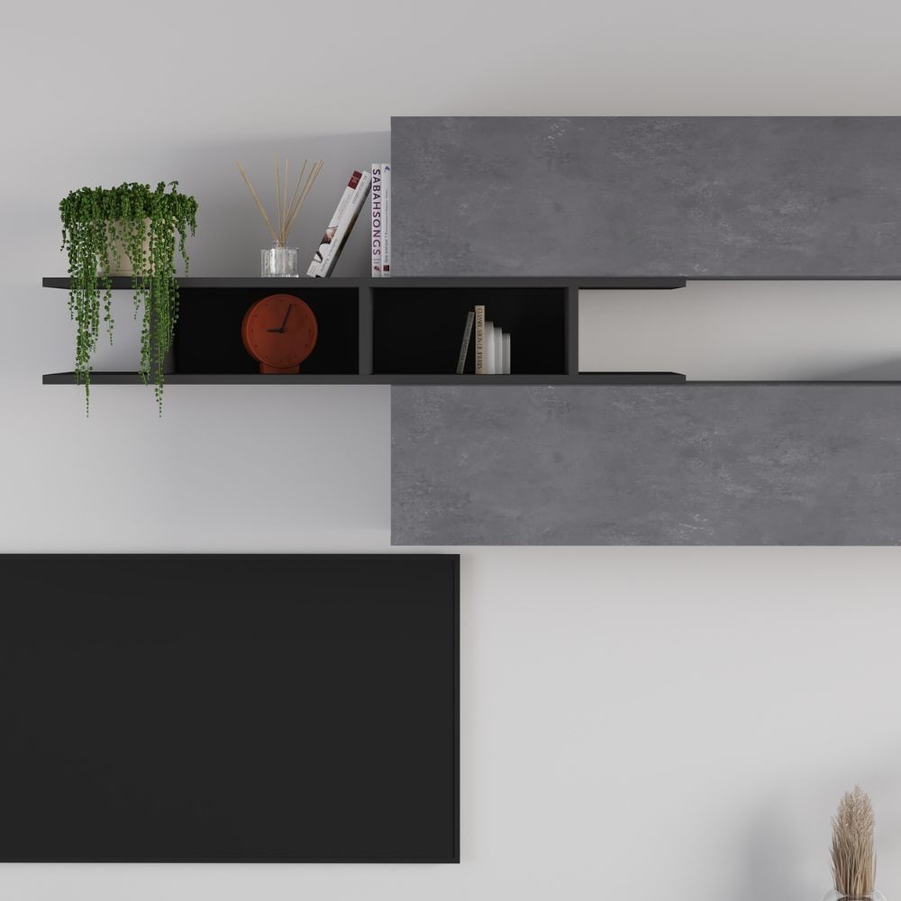 Parete attrezzata Venus colore antracite e cemento H 206.10x40x250 cm.