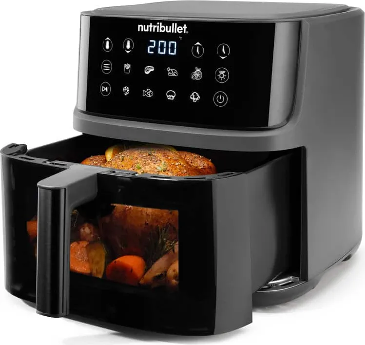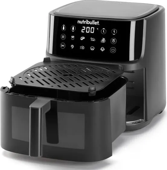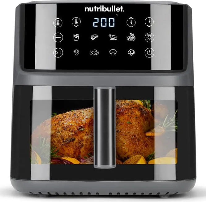 NutriBullet CrispLite Vision. Tipo di prodotto: Friggitrice ad aria calda, Capacità: 8 L, Temperatura (min): 80 °C. Tipo di costruzione: Singolo, Colore del prodotto: Nero, Tipo di controllo: Touch. Potenza: 2000 W. Larghezza: 435 mm, Profondità: 333 mm, Altezza: 348 mm. Non contiene: PFAS