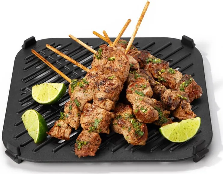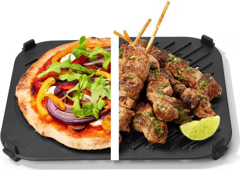 Questo accessorio revesrsibile, rivestito in ceramica priva di PFAS, espande le capacità della tua friggitrice ad aria con due opzioni di cottura specializzate: 1. Una piastra per grigliare che offre il gusto della fiamma viva, con tanto di carbonizzazione, senza l’aggiunta di sporcizia, carbone o pulizia difficile. 2. Un piatto per croccanti e pizza progettato per friggere i tuoi cibi preferiti alla perfezione o per impasti come la pizza fino a renderla perfettamente tenera e croccante, sciogliendo e amalgamando i tuoi condimenti preferiti.