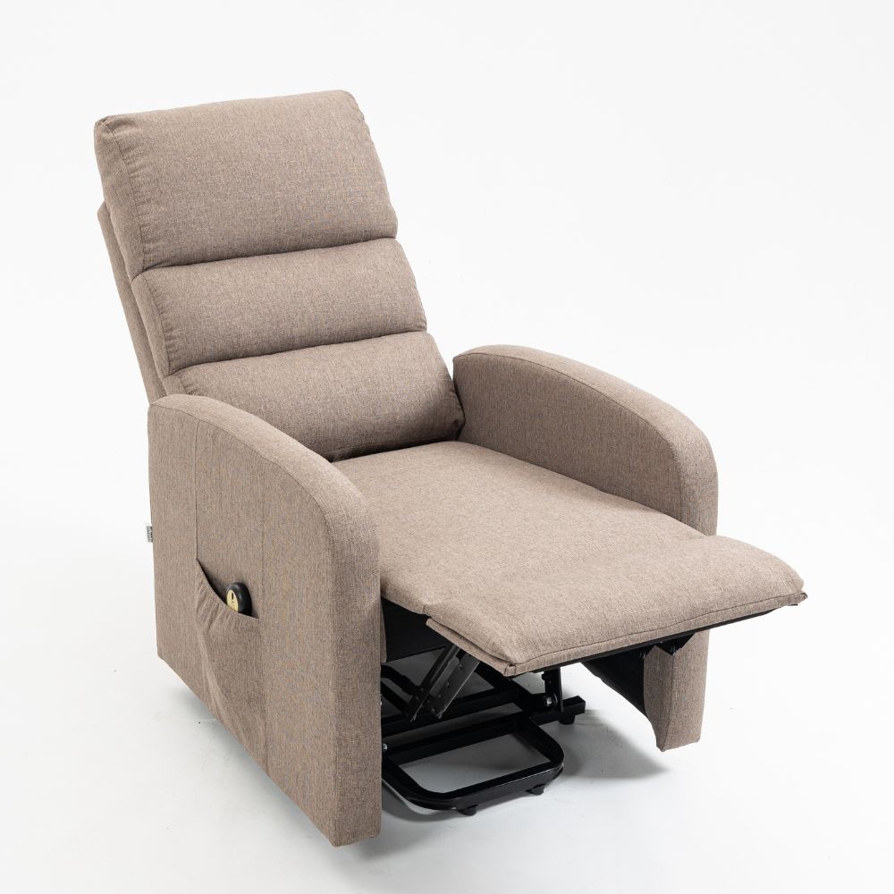 Poltrona alzapersona Lorena un motore in tessuto cappuccino