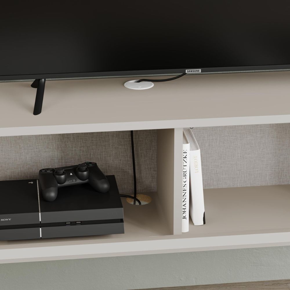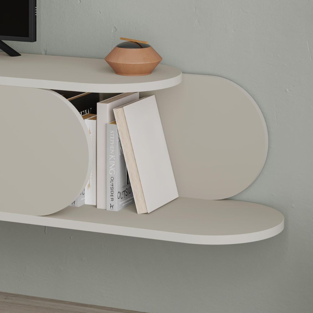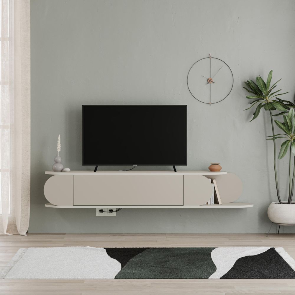Mobile porta tv sospeso Tone con 2 ante a ribalta e vano laterale a giorno colore cashmereMobile porta tv sospeso Tone con 2 ante a ribalta e vano laterale a giorno colore cashmere