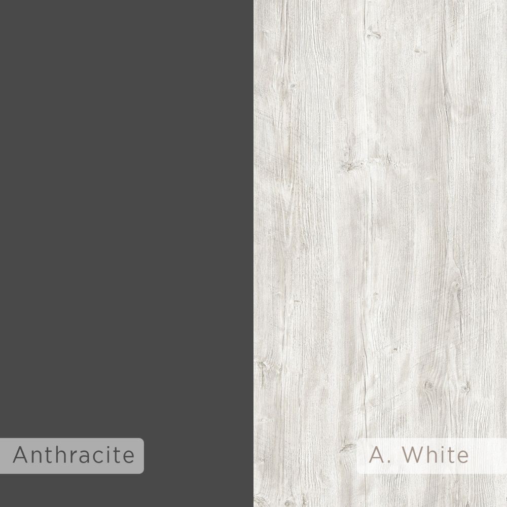 Porta TV Klappe struttura colore antracite con nicchia a giorno due ante colore bianco vintage e due mensole