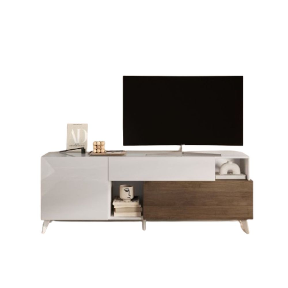 Porta Tv Marion 180 cm in bianco lucido e mercure