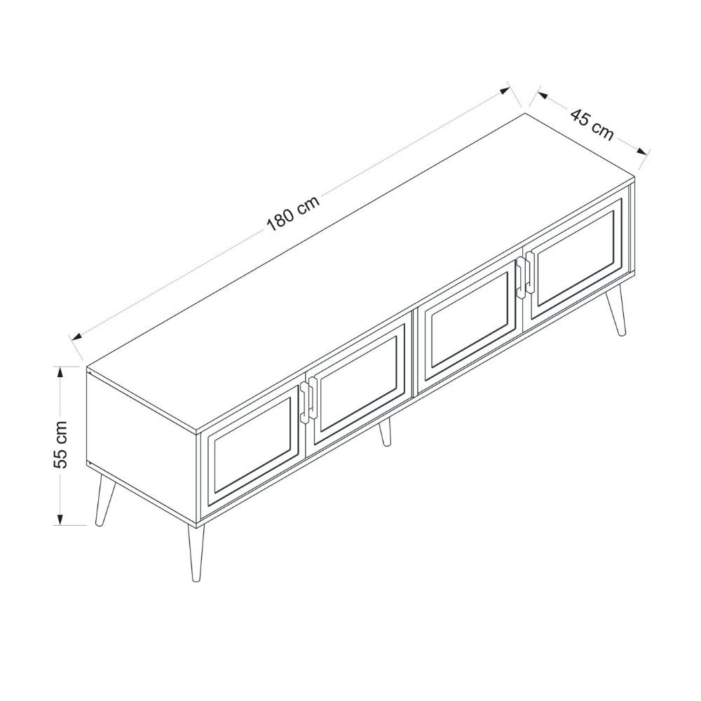 Dimensioni: L 180 x P 45 x H 55 cm.