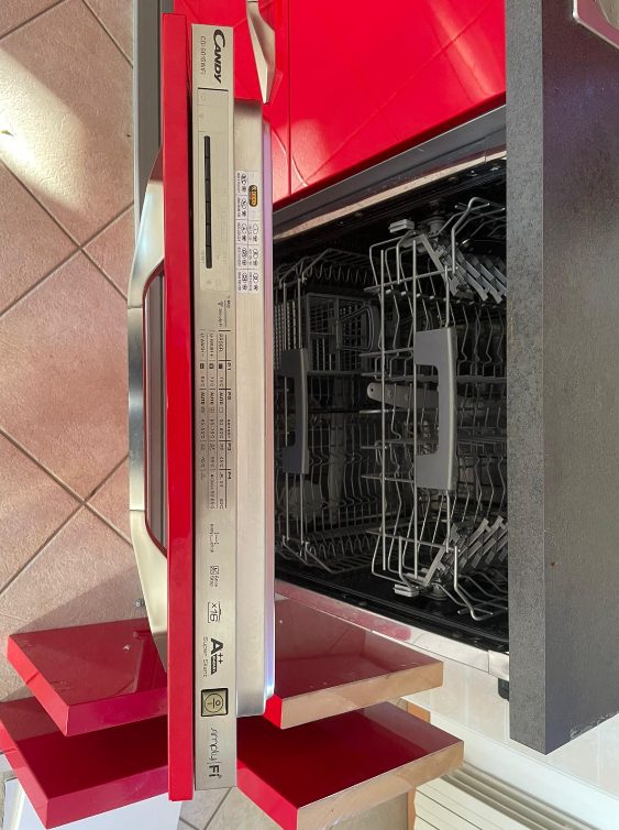 Cucina completa di lavello , lavastoviglie , piano cottura , cappa , frigo . Misure: 260×185 C 187