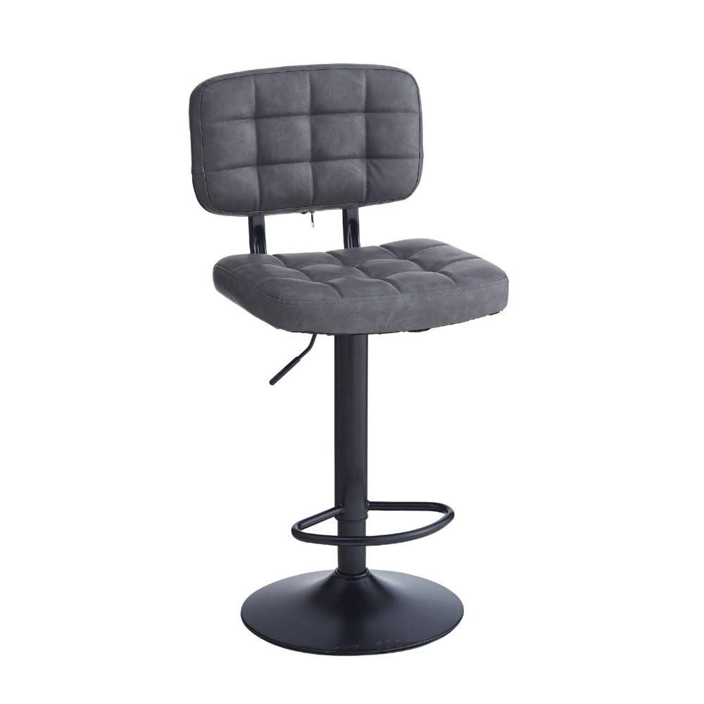 Sgabello Mavi con seduta e schienale in ecopelle grigio e gamba in metallo nero < Servizi Cotfasa whatsapp icon