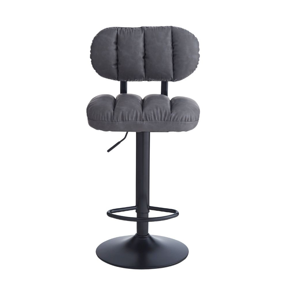 Sgabello Tati con seduta in ecopelle grigio e gamba in metallo nero