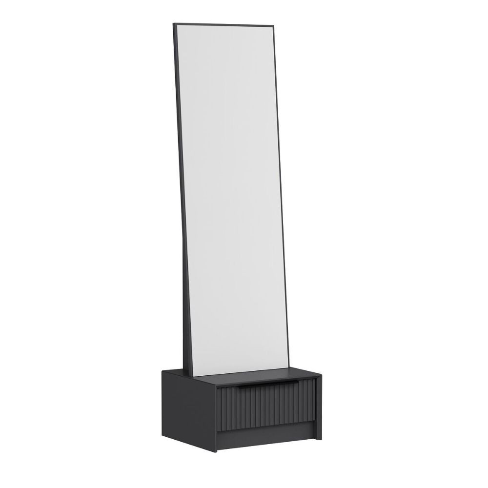 Specchio con base cassetto Kale colore antracite effetto cannettato