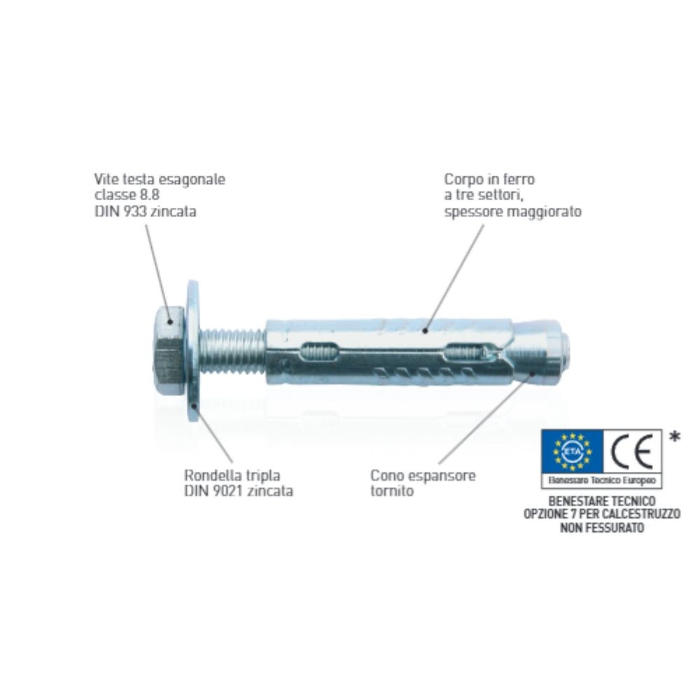 Adatto per fissaggi medio-pesanti su calcestruzzo e murature compatte.