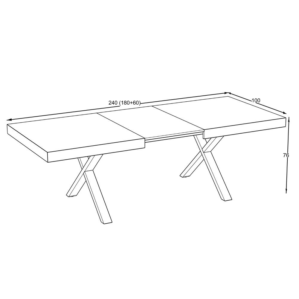Dimensioni tavolo aperto: L 240 x P 100 x H 76 cm.