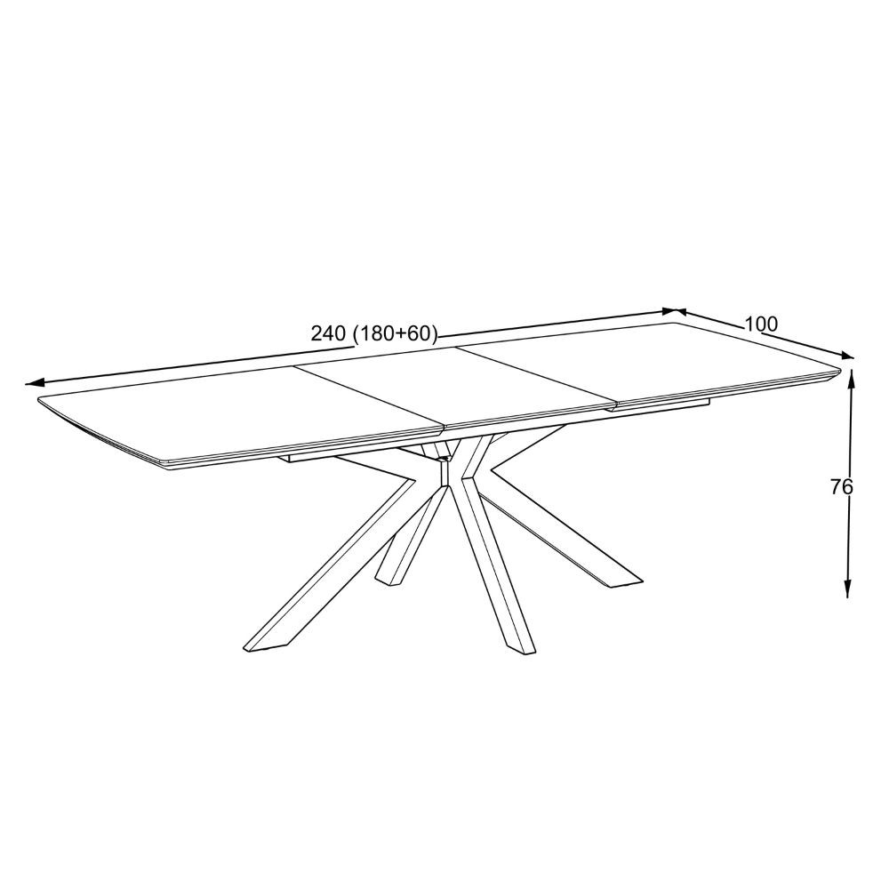 Dimensioni tavolo aperto: L 240 x P 100 x H 76 cm.
