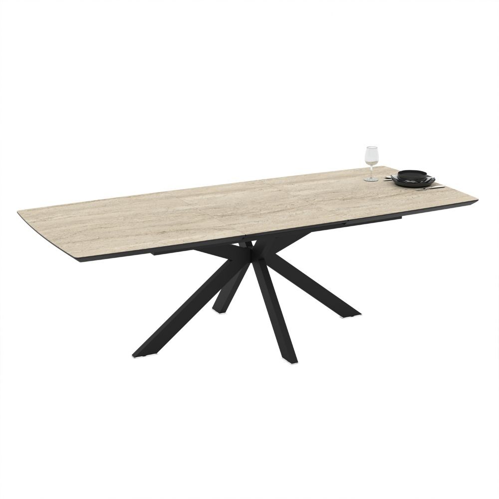 Tavolo allungabile Verano con piano travertino e gambe nere