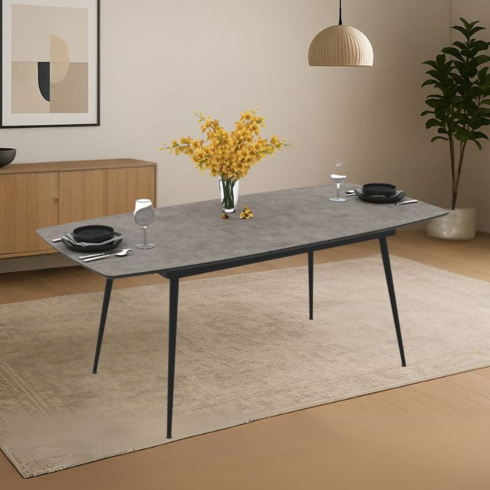 Tavolo allungabile Yense con piano colore cemento e struttura in metallo neroTavolo allungabile Yense con piano colore cemento e struttura in metallo nero