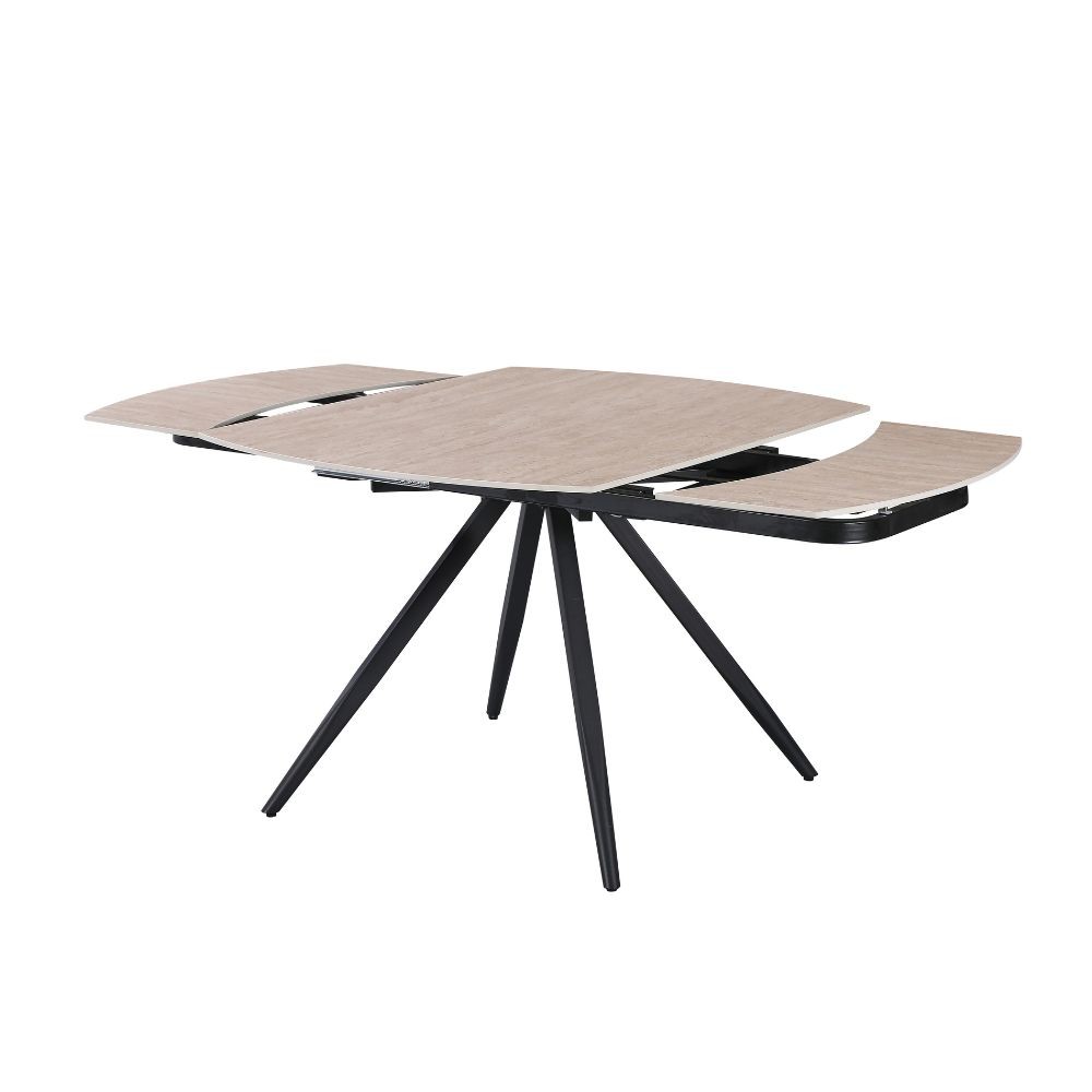 Tavolo girevole allungabile Kitti con piano in ceramica effetto marmo travertino e gambe in metallo nero