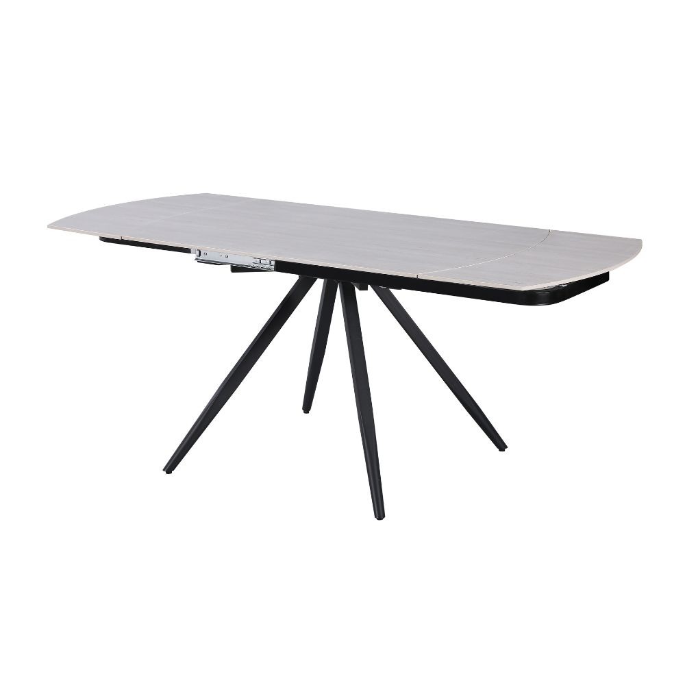 Tavolo girevole allungabile Kitti con piano in ceramica larice beige e gambe in metallo nero