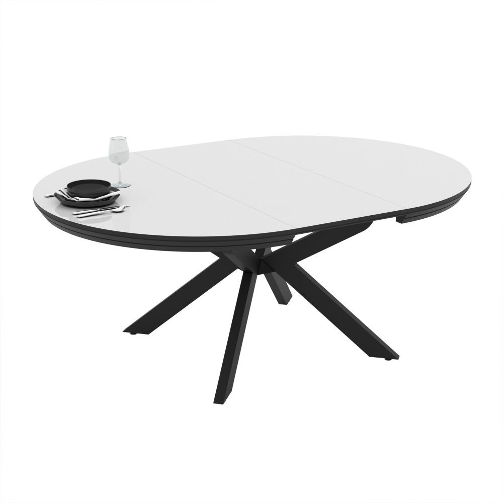 Tavolo allungabile Meli con piano bianco lucido con gambe nere
