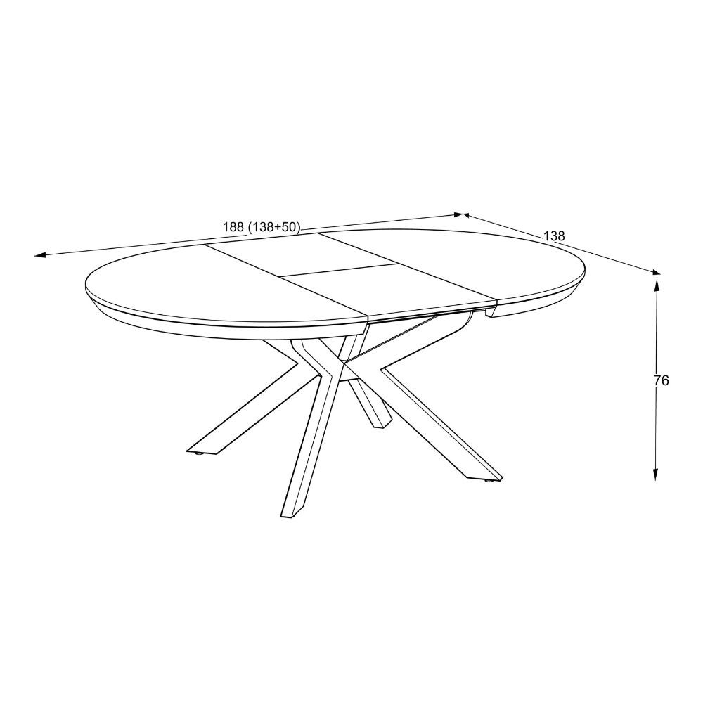 Misure tavolo aperto: L 188 x P 138 x H 76 cm.