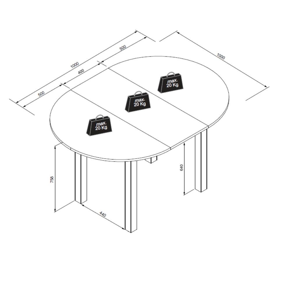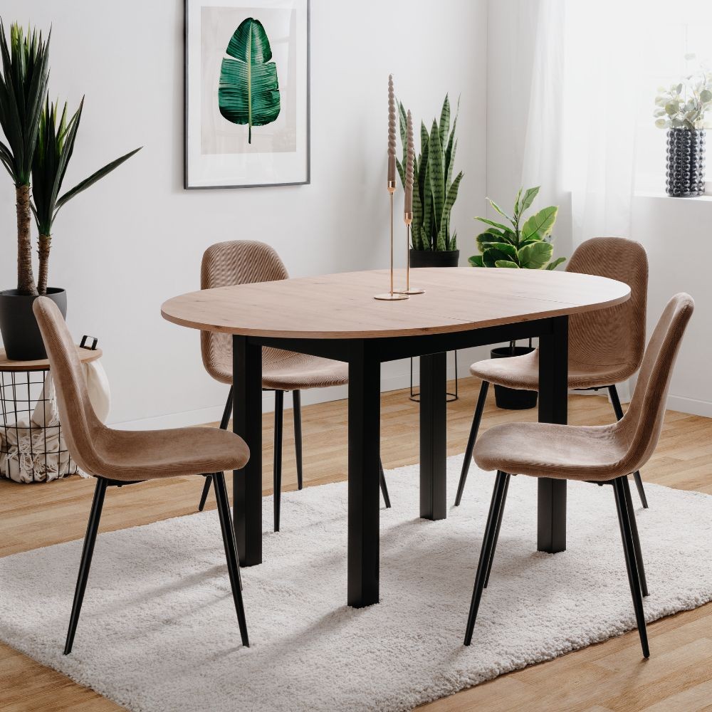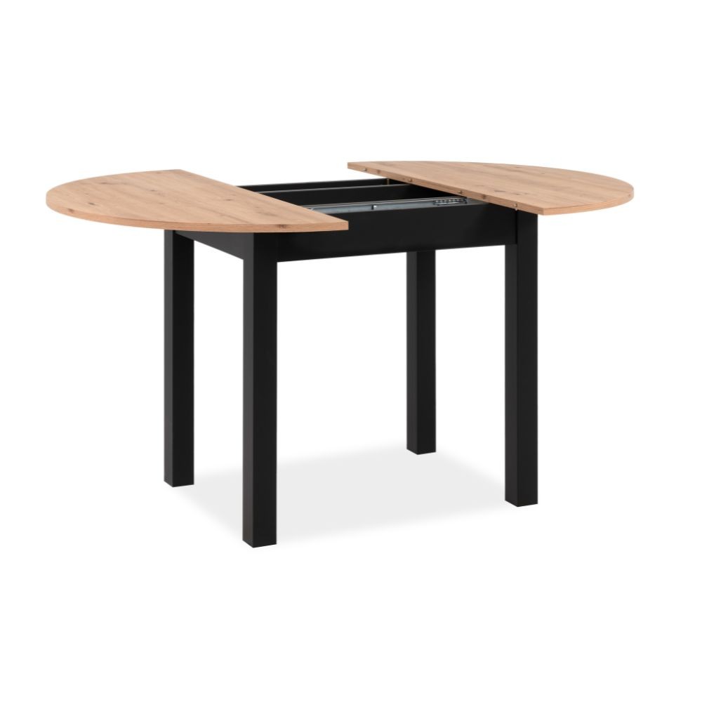 Tavolo rotondo allungabile Coburg 100 in piano quercia e struttura nera 100x76x100 cm.